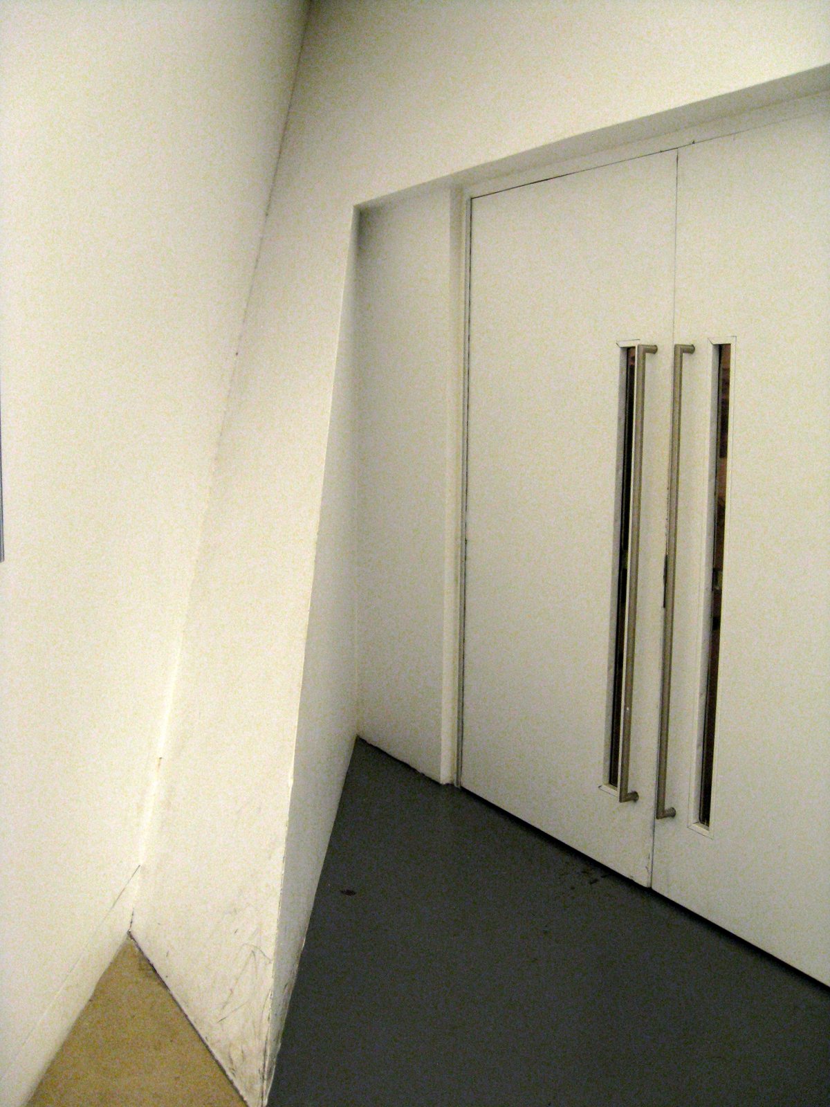 No, the left door can't be fully opened.Acute angles are dust traps the cleaners' machines obviously can't get into. People repeatedly kick unexpected wall protrusions and knock their heads on acutely angled walls then put their hands out for protection. The whole place is building up the patina of a well used obstacle course.If large mirrors were added to the walls it could possibly be more successful as a fair-ground type, mirrored, fun house maze. Ooops, that's a bit harsh.Actually, there was one display area where I felt the jarring, discordant spaced worked. It was the most serious and emotionally intense exhibition - photographs of victims tortured by the Khmer Rouge regime in Cambodia between 1975 and 1979,