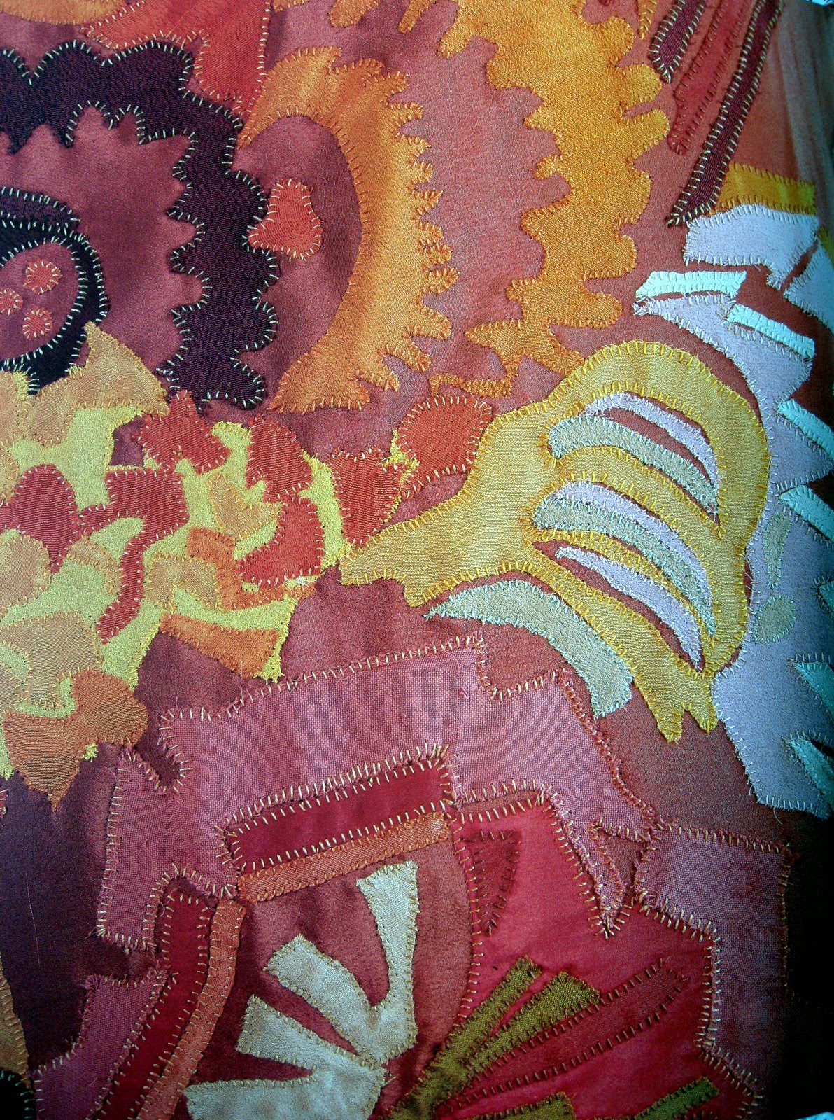 Mariska Karasz's 1927 appliqued silk jacket would be misinterpreted if thought to be inspired by Matisse's cutouts. Matisse didn't start doing his cutouts until he became ill and he first published them in 1947. It is now understood how much textiles influenced Matisse's work so could it be he was inspired by Mariska's work? His mother made fashion garments. However, it is said, both Matisse and Mariska looked to folk costume embroideries for inspiration.