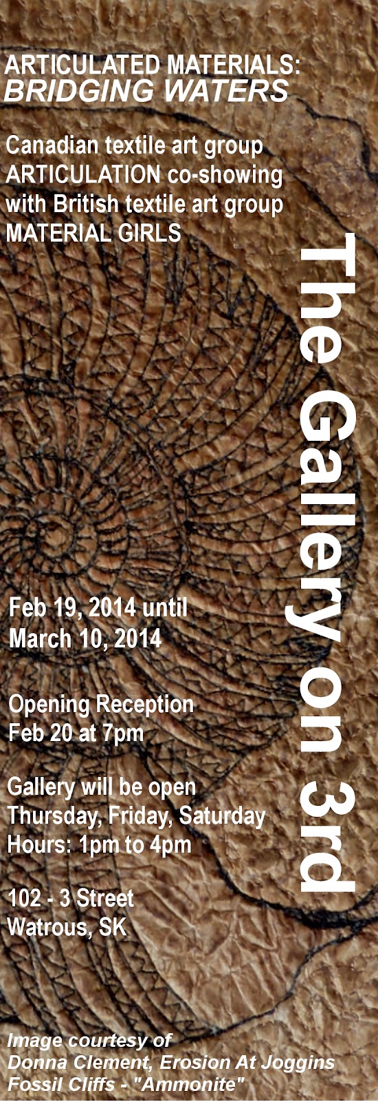 Articulation member, Donna Clement has designed all 4 posters for the Canadian exhibitions. This last one features one of her works, 'Erosion as Joggins Fossil Cliffs -"Ammonite".'