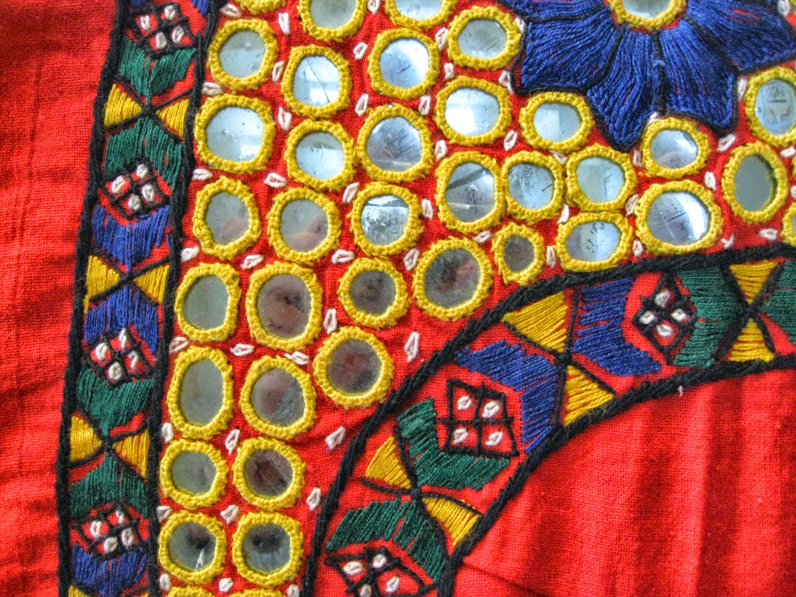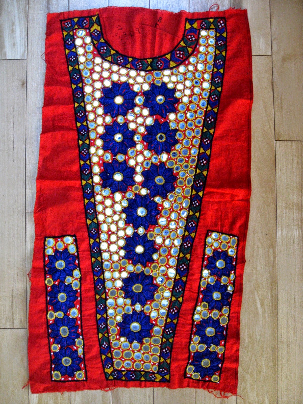 In a cardboard box I had my eye on 4 textiles in particular - this NW Indian shisha embroidery.
