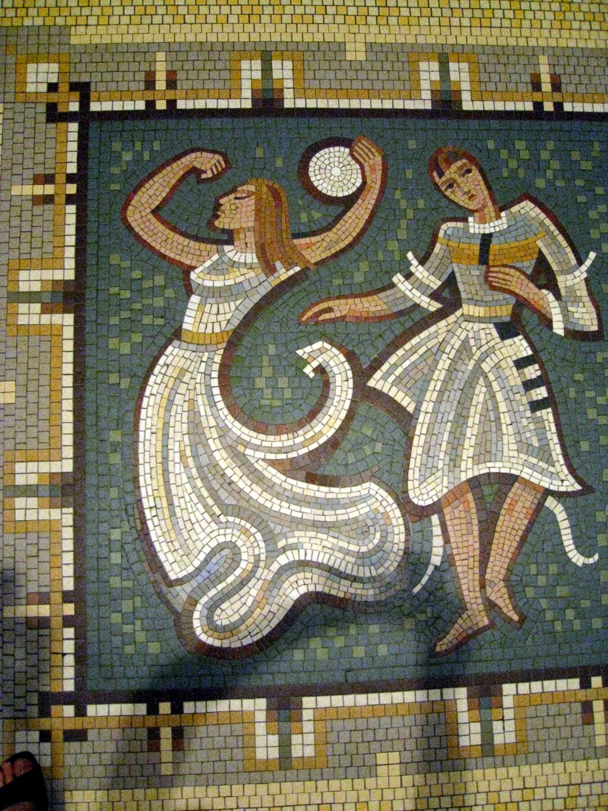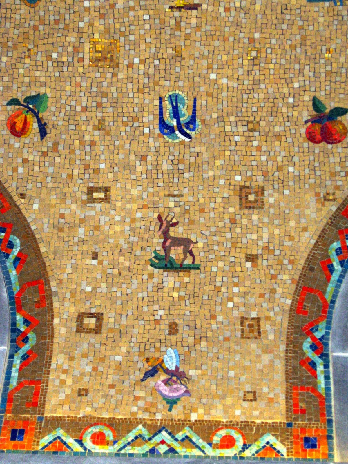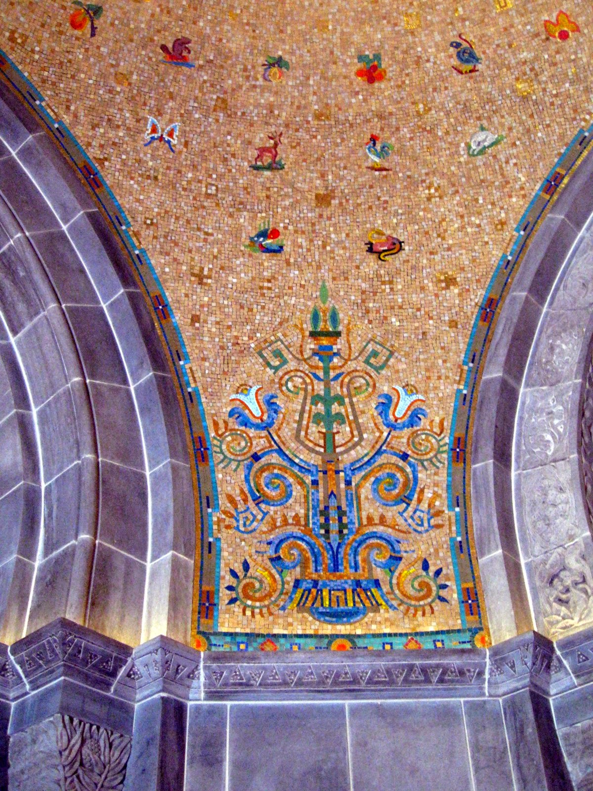 The ceilings are covered in mosaics with small ecological motifs.