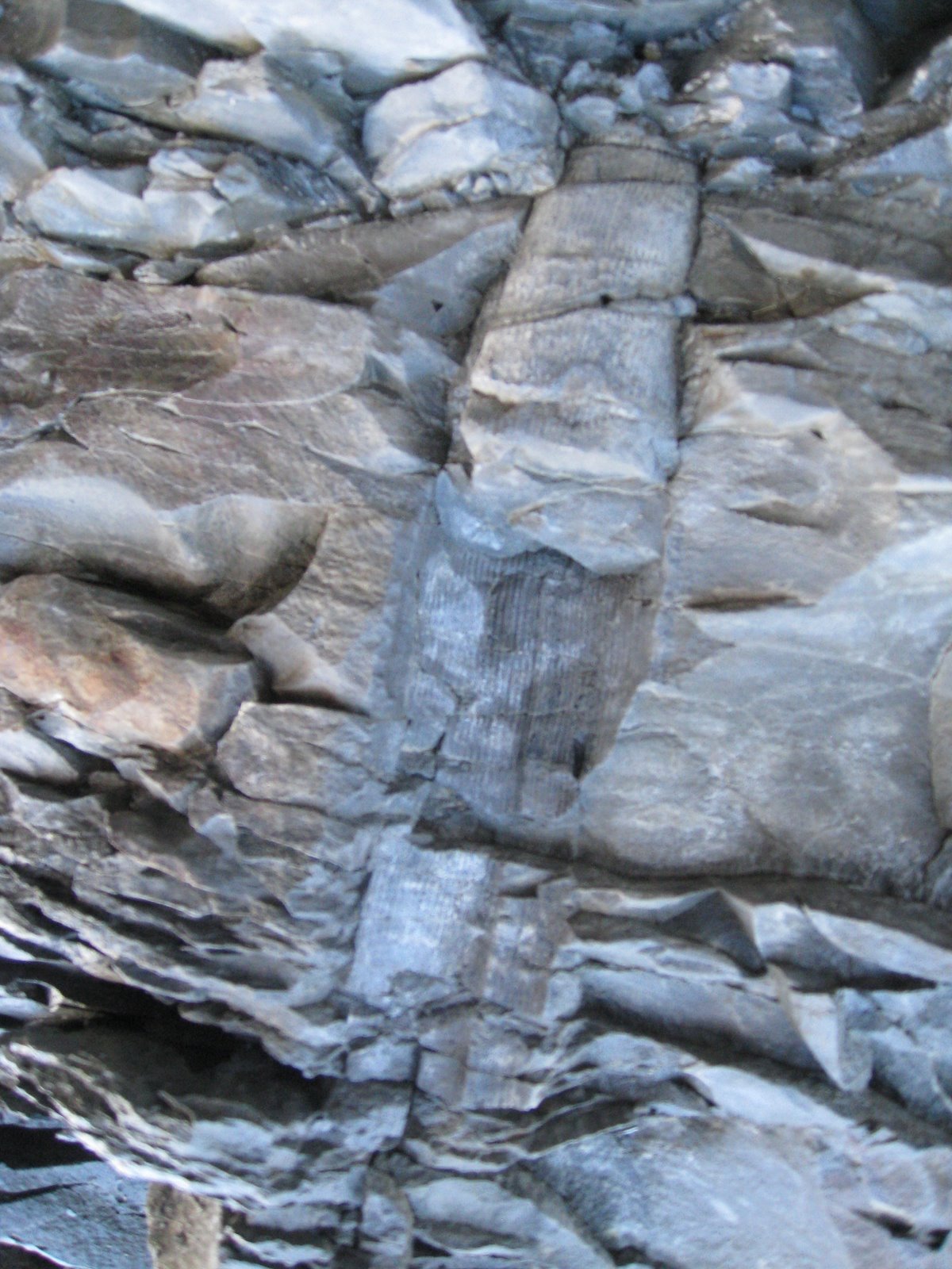 Joggins is where the first fish crawled onto the land. It was covered with huge palm trees, like present day horse tails. The image shows a fossilised palm tree being exposed. There are lots of interesting textures in the stone.