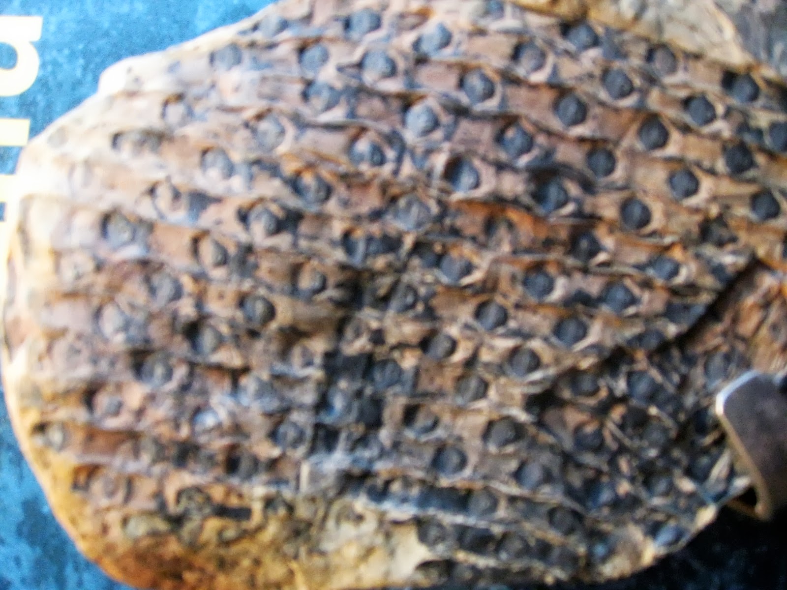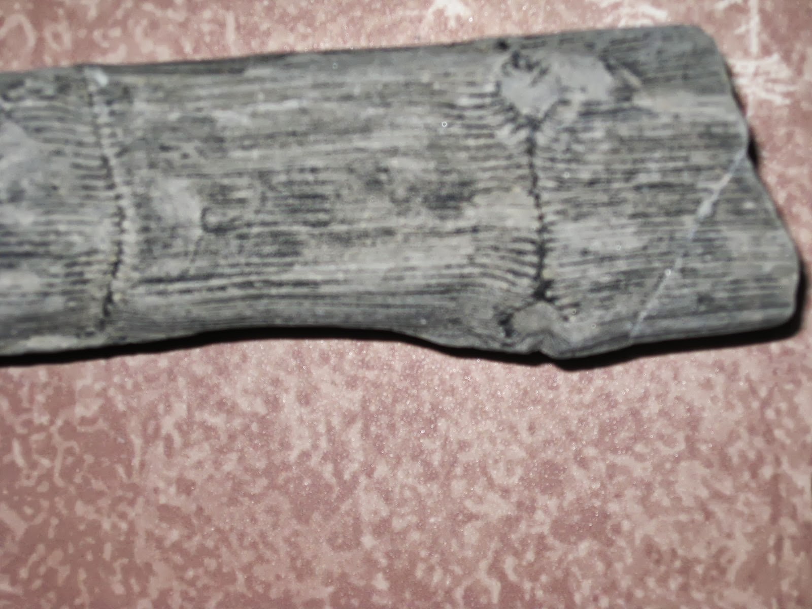 This is the Calamite's distinctive pattern. It is the gigantic ancient ancestor of the Horse Tail or Scouring Rush found in forests today.