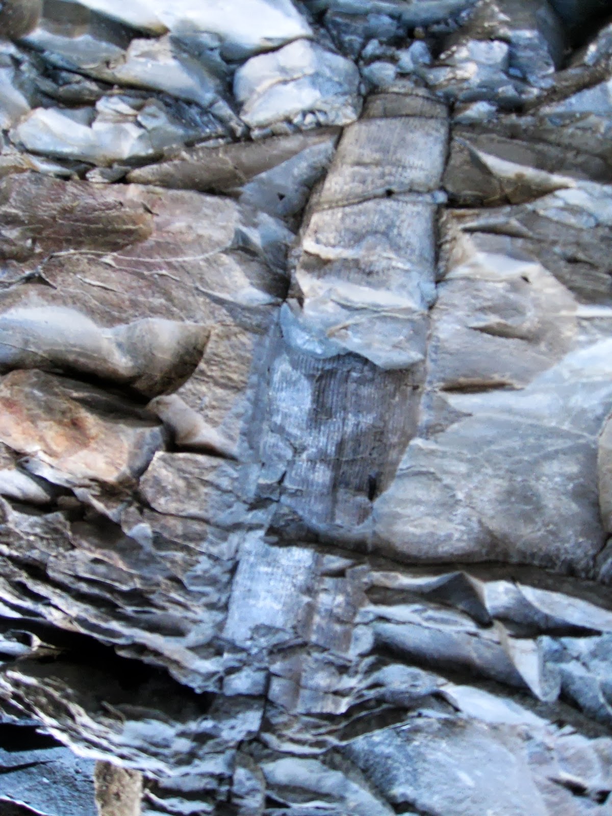 William was our guide down to the site. He passionately explained how the huge surging tides of the Bay of Fundy were actively eroding the Joggins Cliffs to reveal more and more fossils. It must be so exciting to be a scientist going down to the beach under the cliffs when the tide is out, particularly after the high spring tides, to see what new fossils had been revealed.