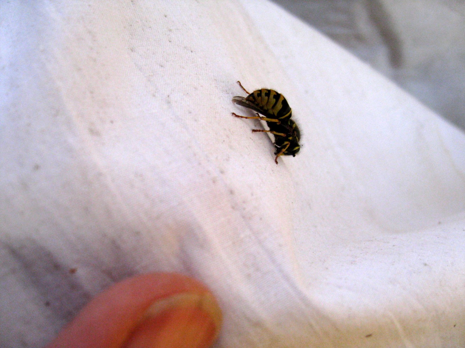 While working on the sheet I disturbed the wildlife. I liked it when spiders ran over my fingers - I felt connected. But I was not keen on connecting with wasps hibernating in this new condo they had found. They hung on by their mouths and made low slow buzzing noises when I moved the sheet. I was pleased when they decided to relocate.