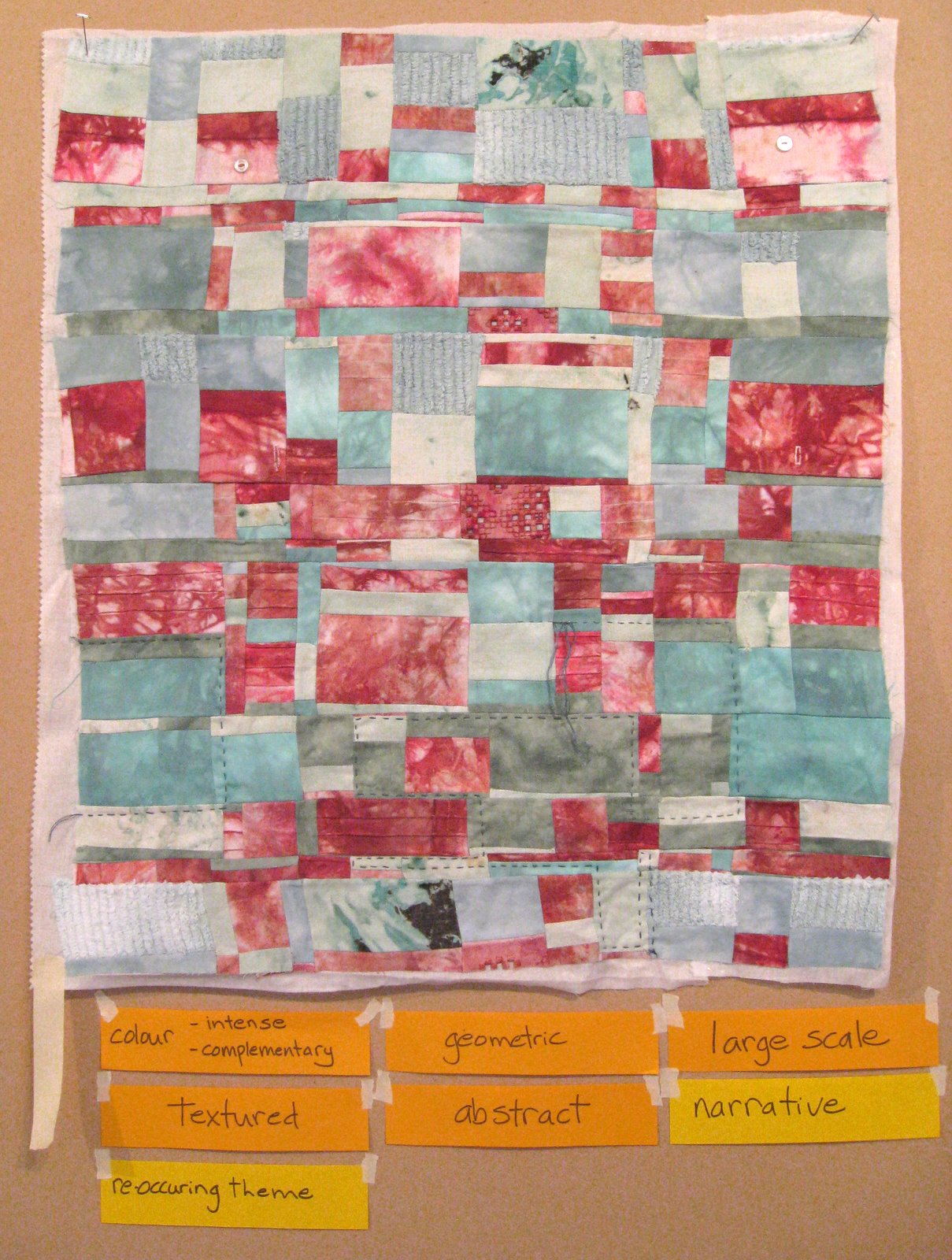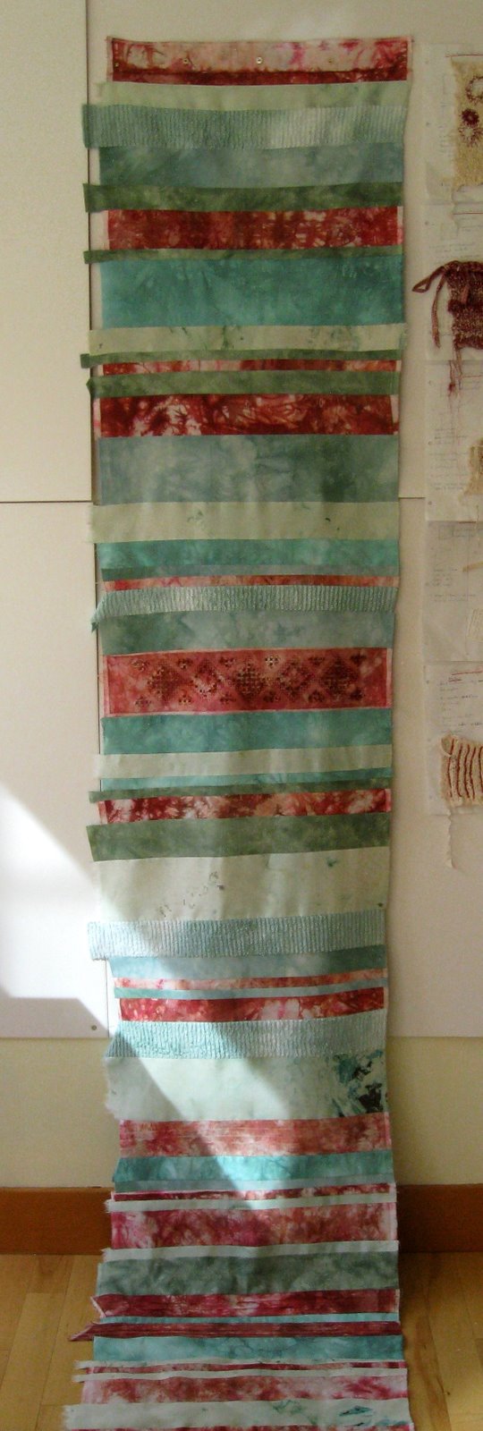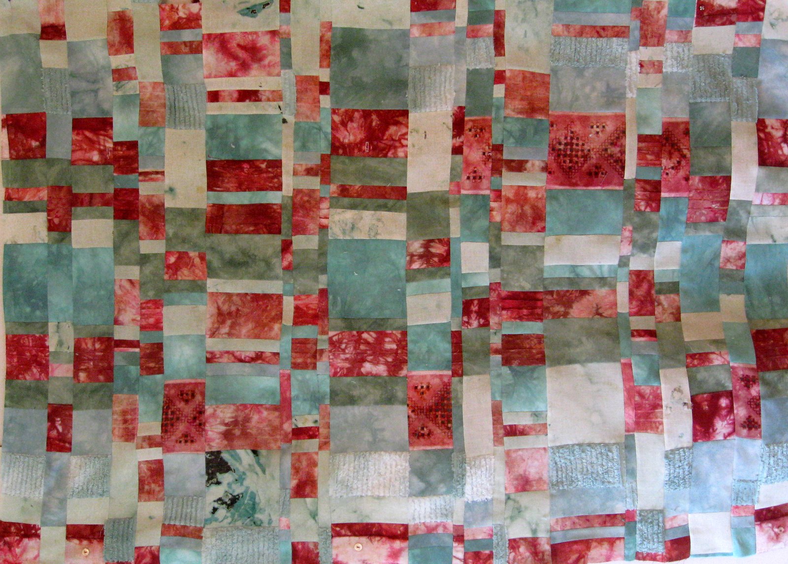 I used a Val Campbell-Harding method to randomly strip-piece the different cloths.
