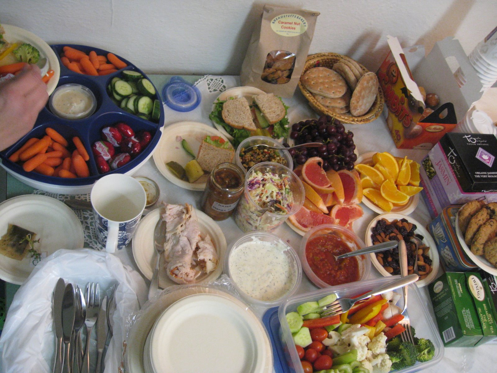 We stopped only to have a delicious pot luck lunch then went back to work.