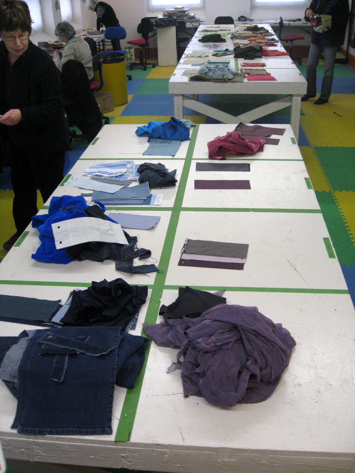 Today there was a Colour Work Bee in the Victoria College of Art.Textile students and faculty spent many hours sorting fabrics into colour groups.