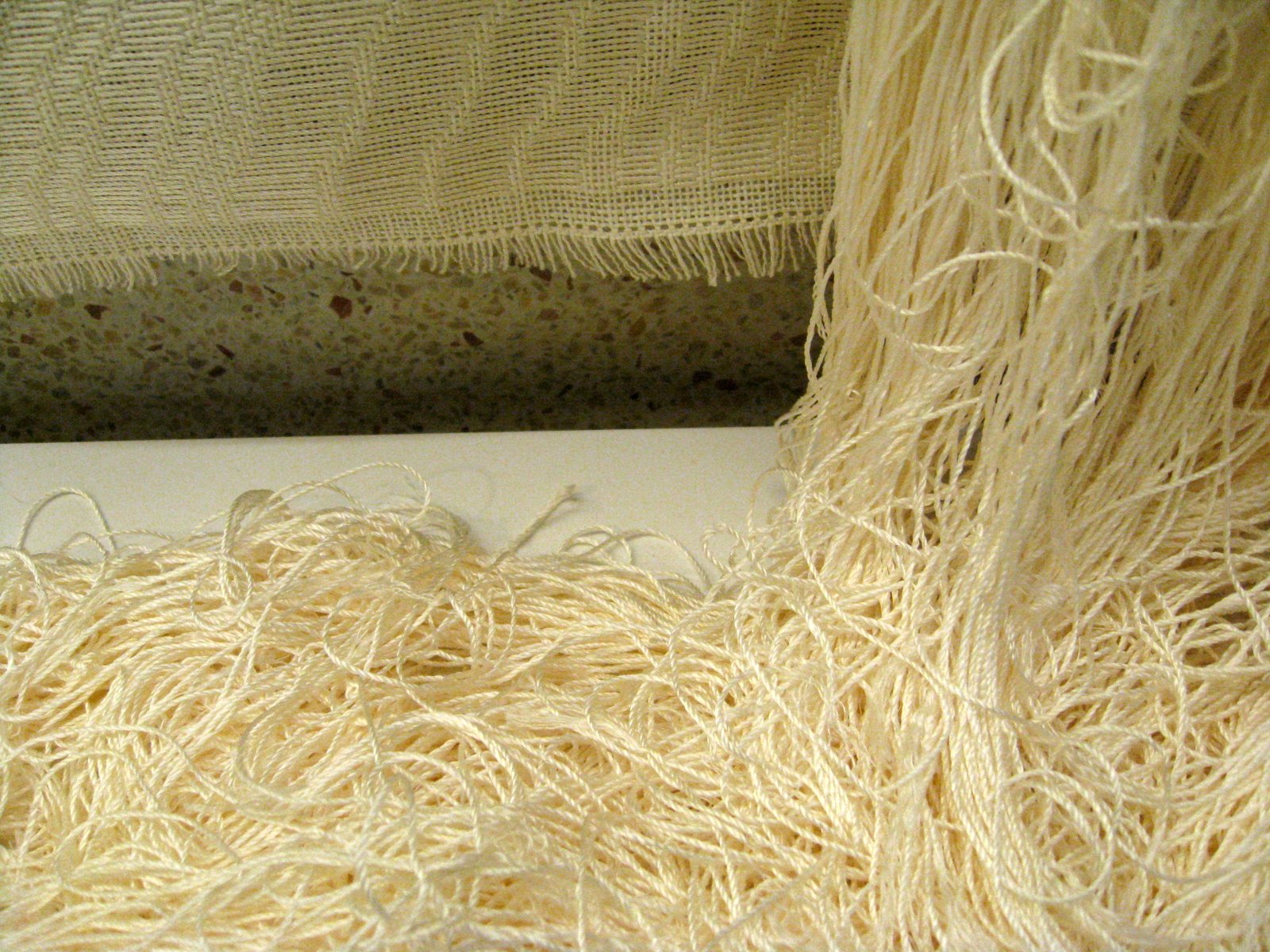 An elegant solution to long silk threads being too vulnerable left on the floor of a public space and exposed to cleaners' brooms.