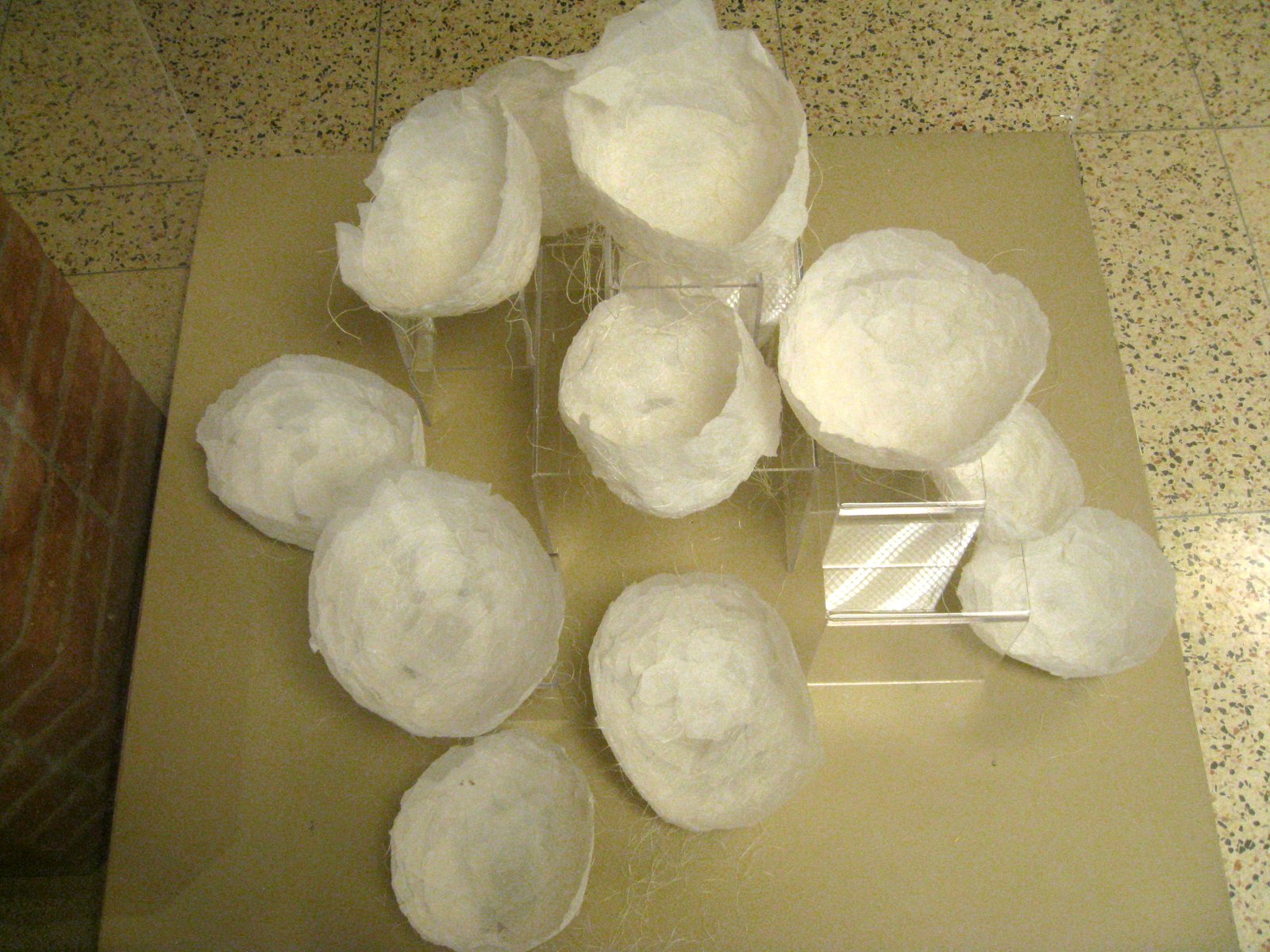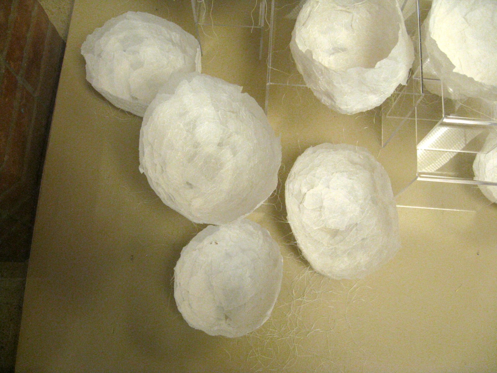 Monika was unable to hang her vessels with the second installation of her work. She stacked them on a plinth.