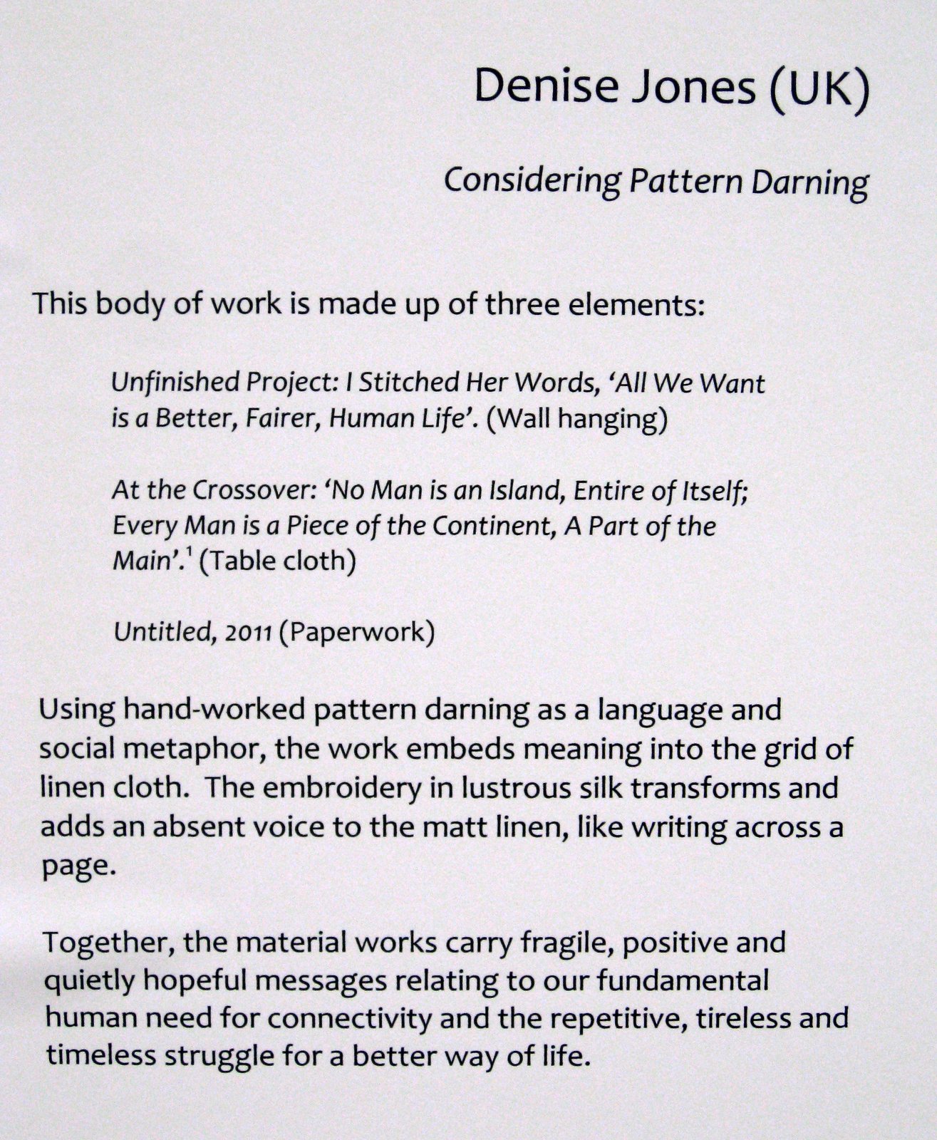 My poor quality photography does not show the exquisite embroidery Denise worked on each of the cloths.