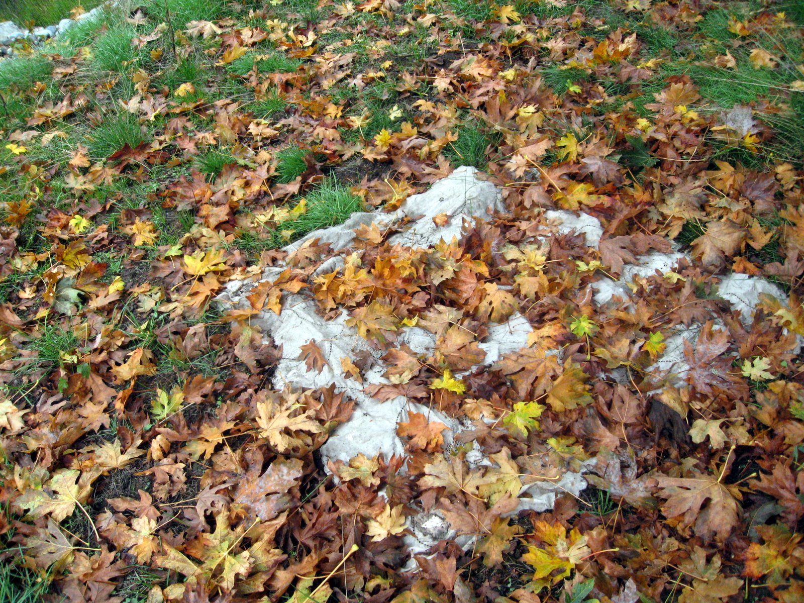It must have been cold last night because this morning there are a lot more fallen leaves under the maple.