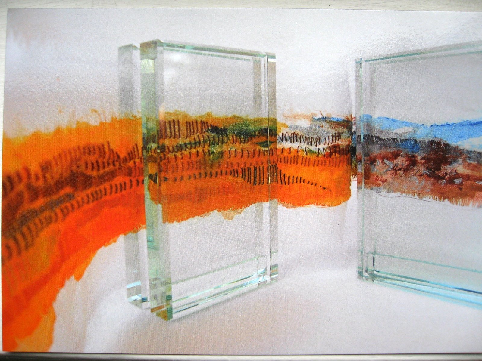 Post card images of Diana Bliss' graduate exhibition work, called 'Transversing the Surface (a series of walks along the River Dee in Cheshire)'.