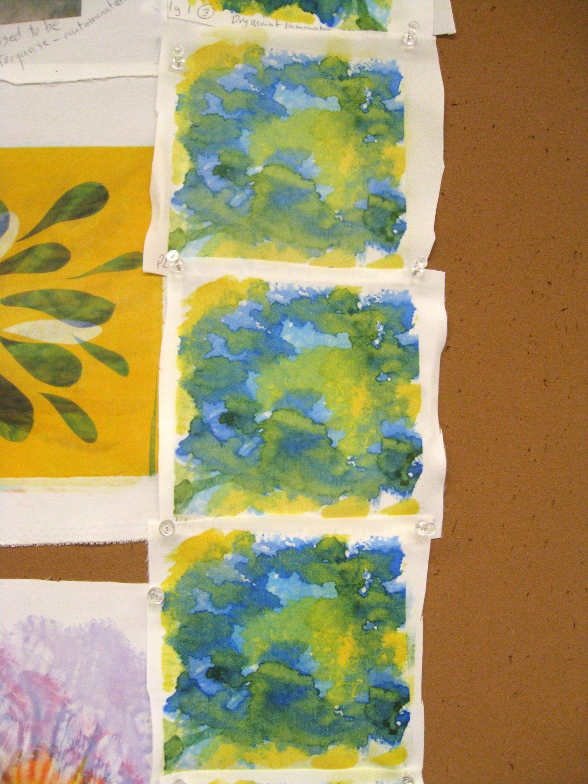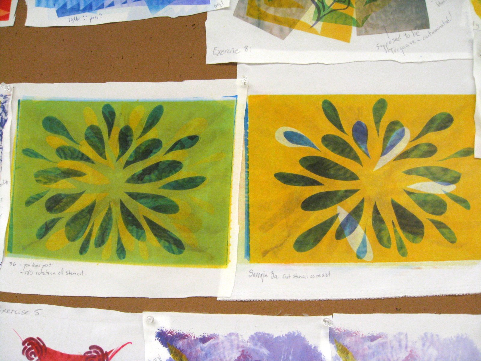 An exercise to see how many prints one could make from one piece of painted paper.