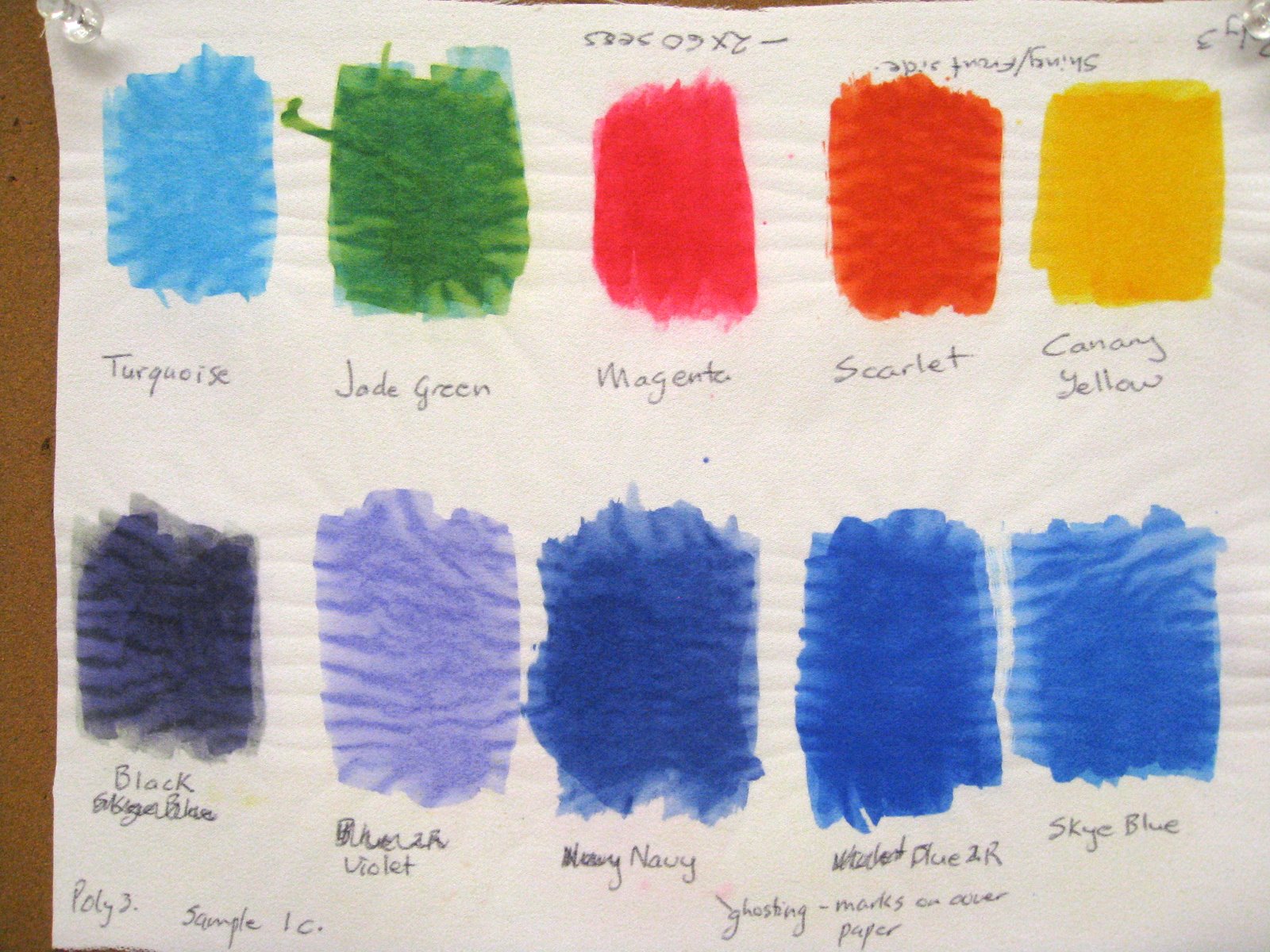 The 1st exercise with the disperse dyes Marie-Therese had us do was a sample of the different dyes.
