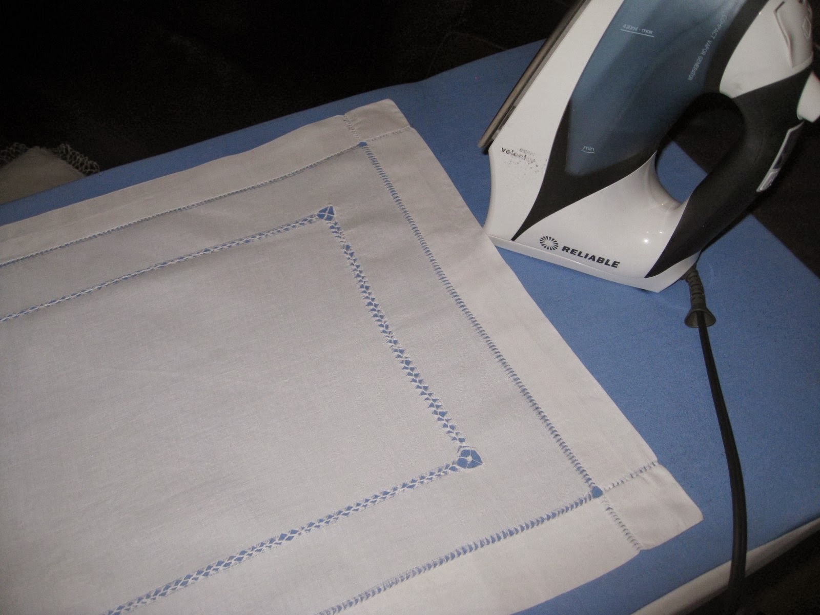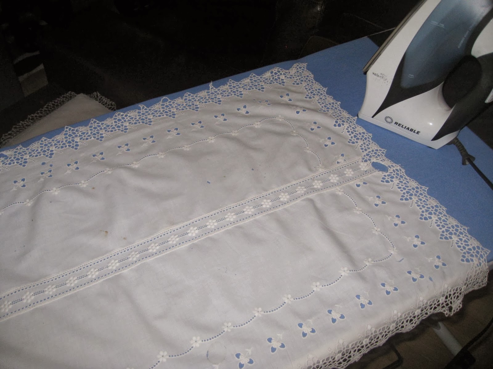 I soaked and washed a pile of domestic linens I had accumulated.I hung them to dry until they were just damp.