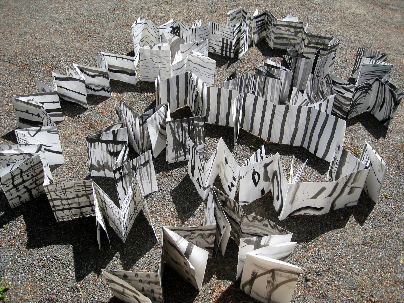 Another book involved folding and cutting up the large piece of paper we marked with ink while outside. This book was such fun to make. It now awaits embellishment, or not.