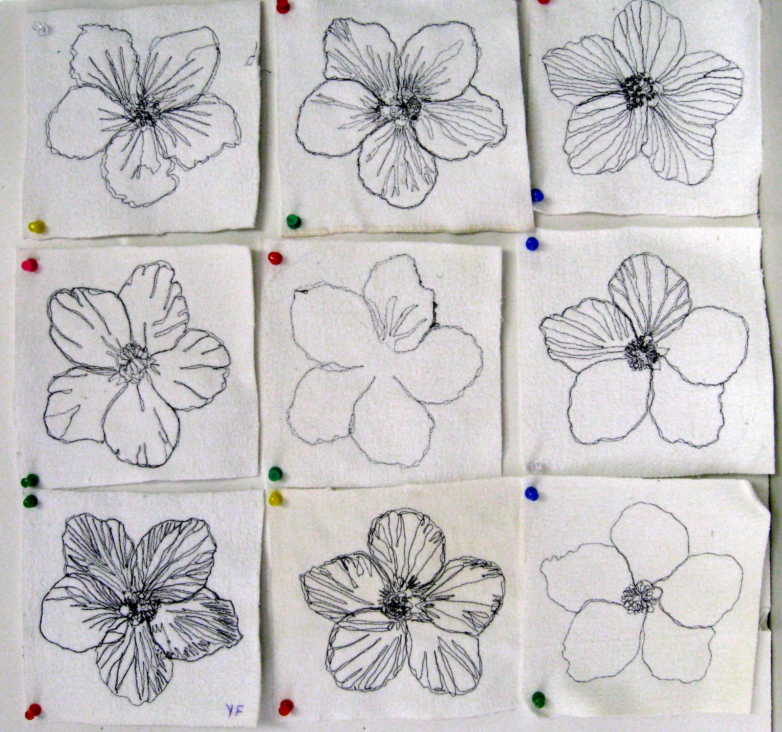 First they traced a flower to get the feel for making a line.