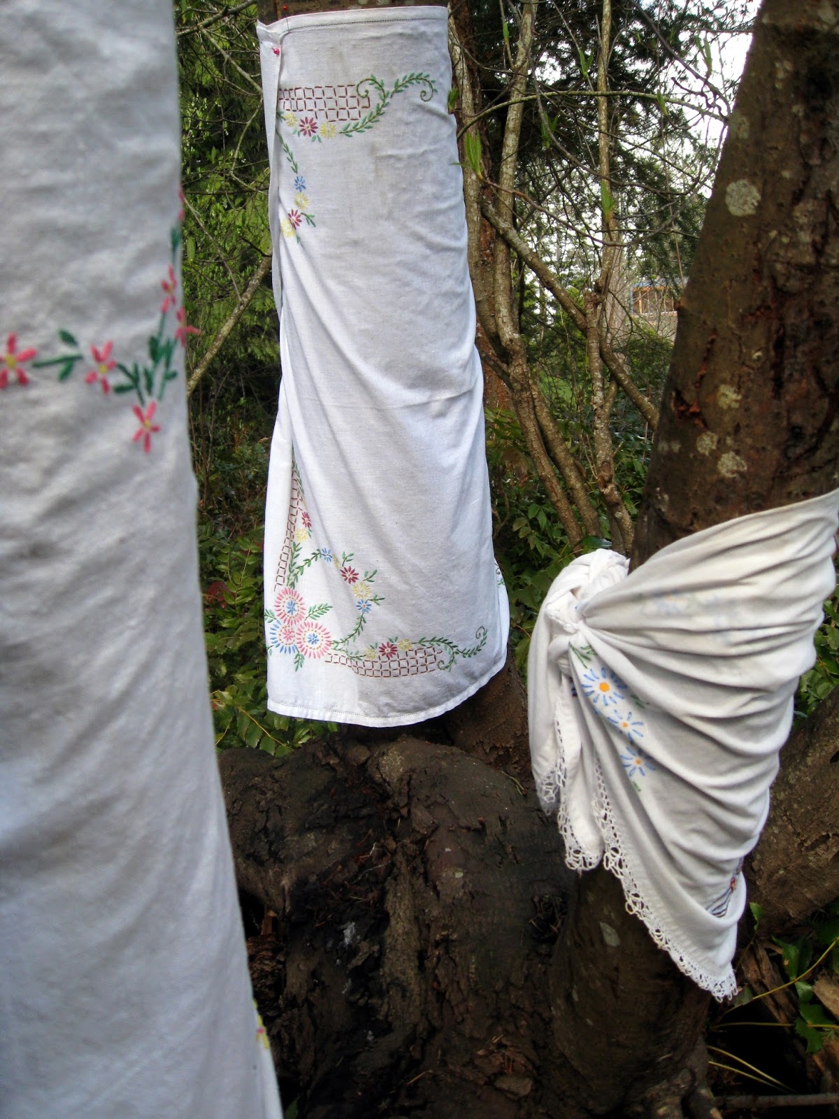 Inside the home, the cloth would be used to present food - outside it is now protecting the bark so the tree can get its food....