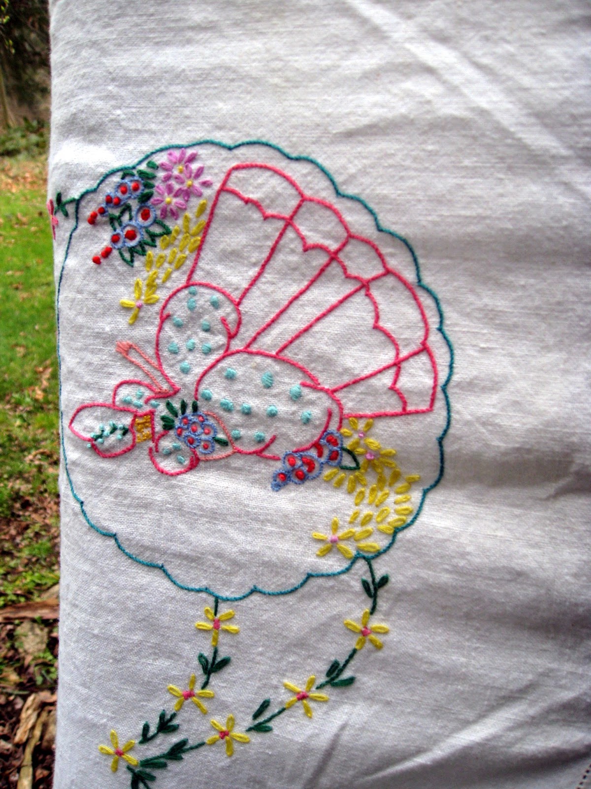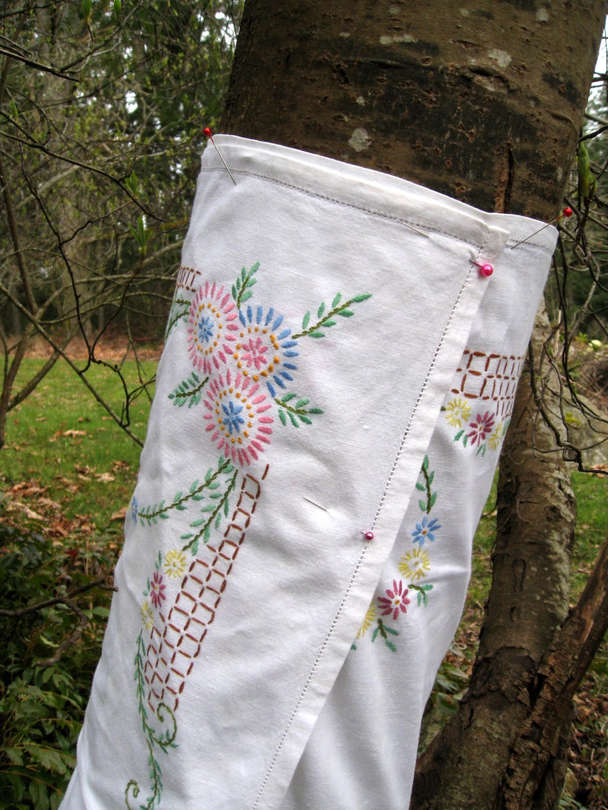 I am placing sacrificial tea cloths over the wounds to protect them. First, I lost my needle - I felt vulnerable and inadequate - I couldn't do what I needed to do because I had lost my valuable tool. Flashback to an earlier time when women depended on their needlework skills to survive. A lost needle was potentially a loss of livelihood translating to an increased risk of not being able to adequately care for her family.