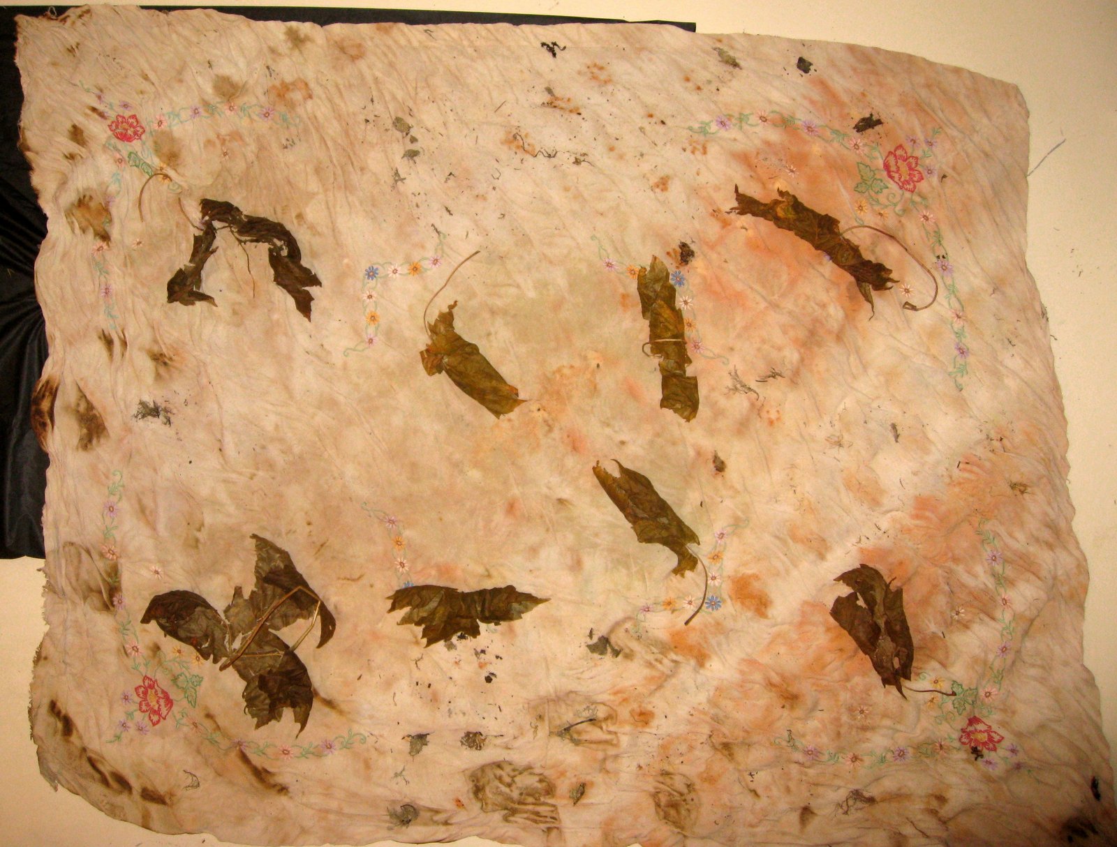 Did I need to leave a body print, visible evidence I have touched the cloths and left my DNA, just as the trees have done?Image of Colin Jenkins' stitched body print 'Purge' - (Source: Embroiderers' Guild (2006)