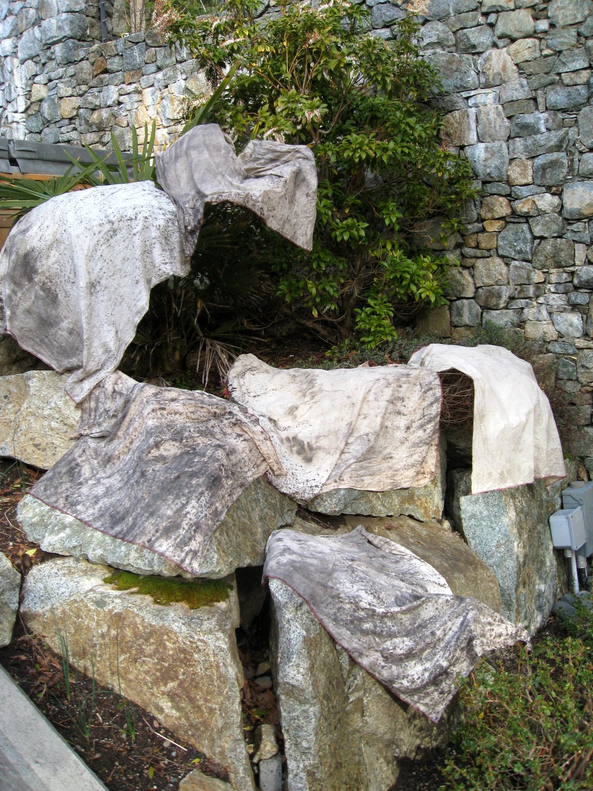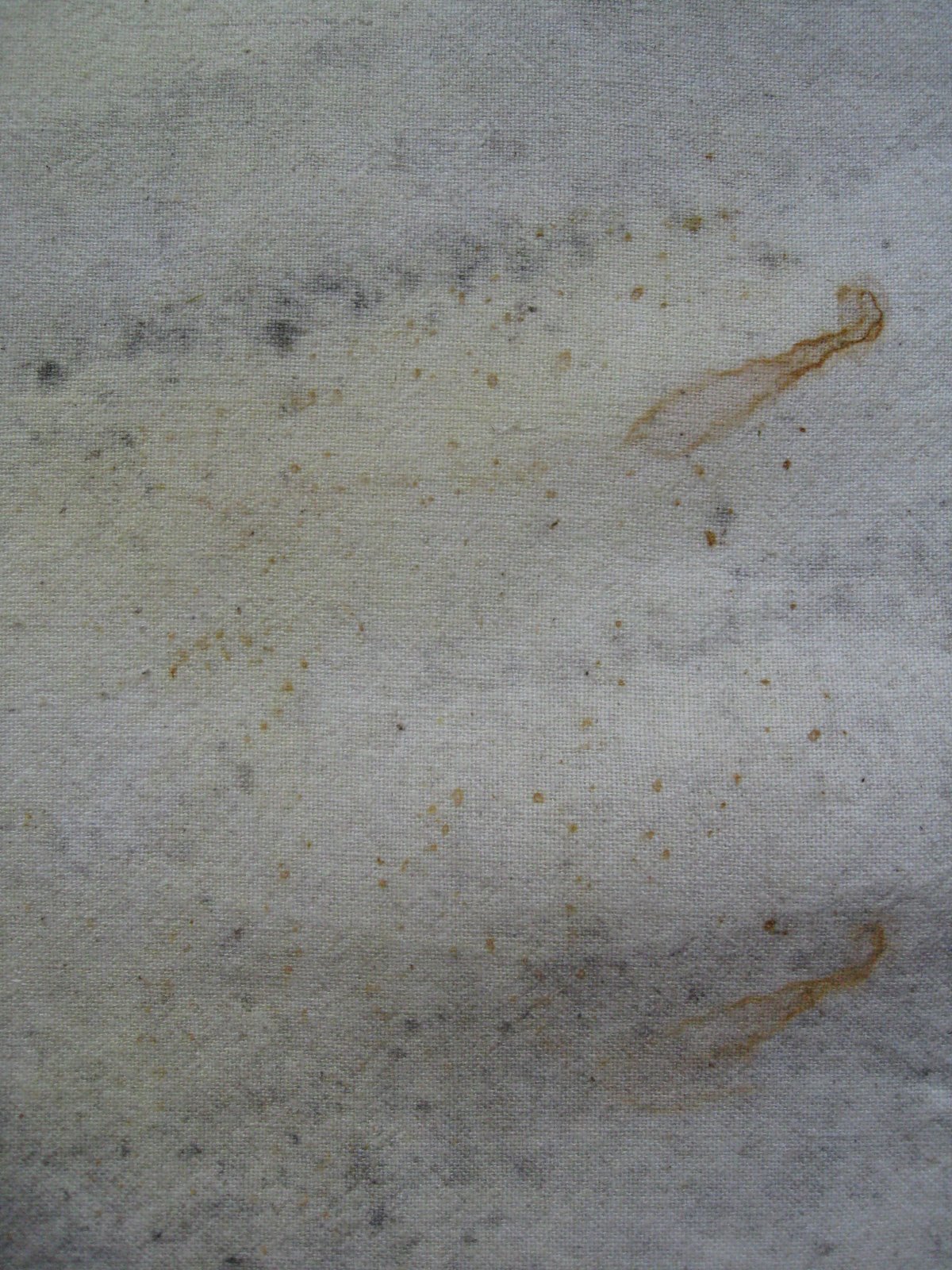 ... almond milk and ash water. Each sample was coded with the different combinations of pre-mordants it had been soaked in. Sample cloths were left to dry slowly, outside on rocks in the garden.