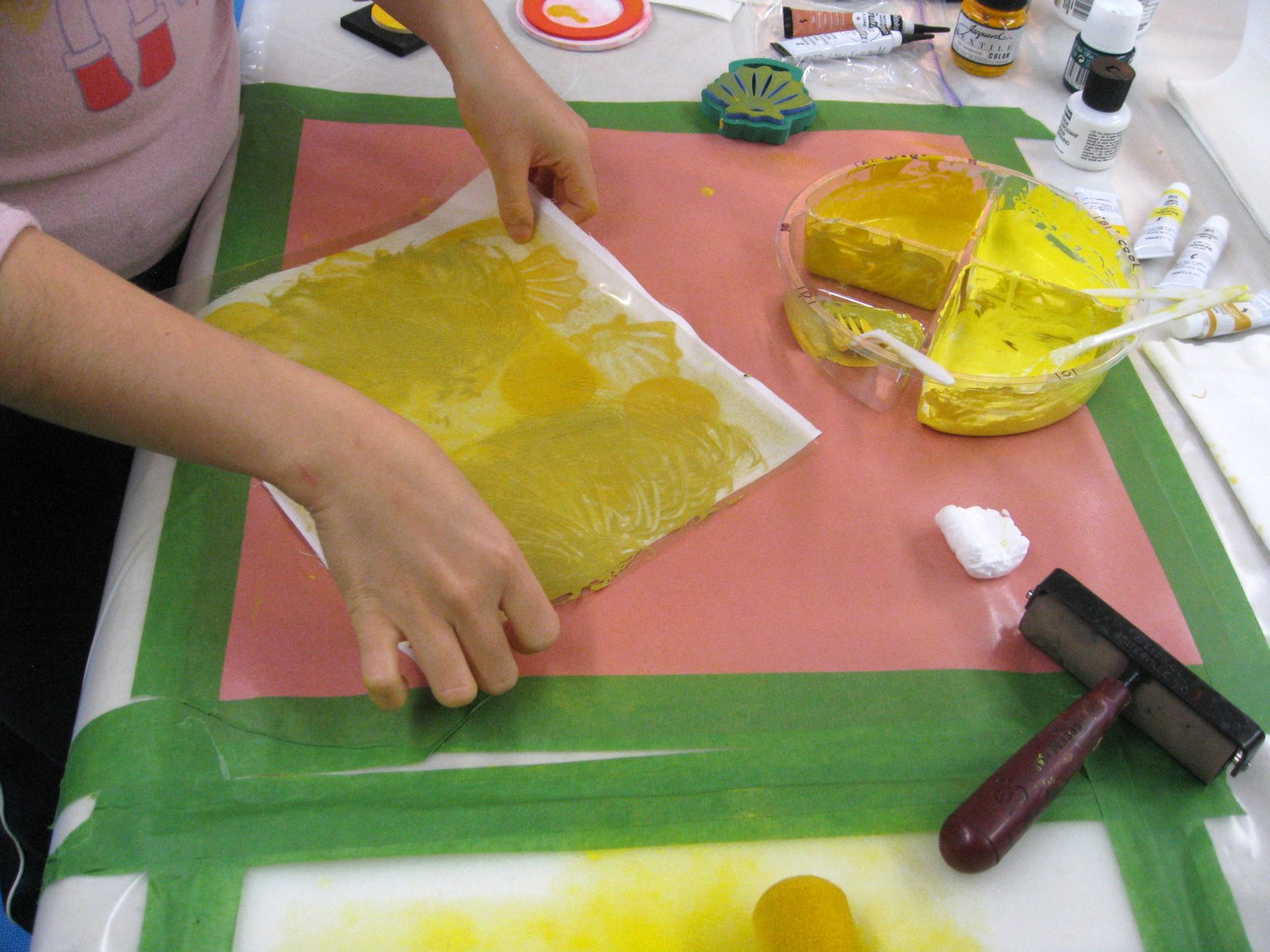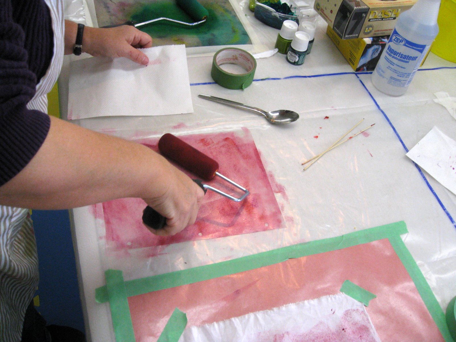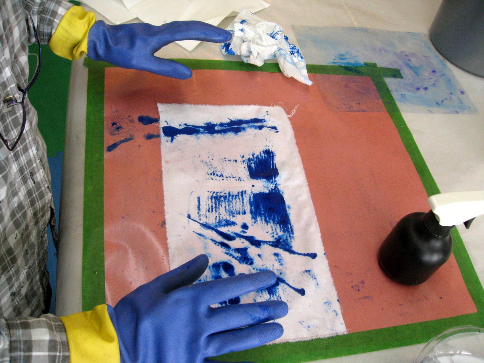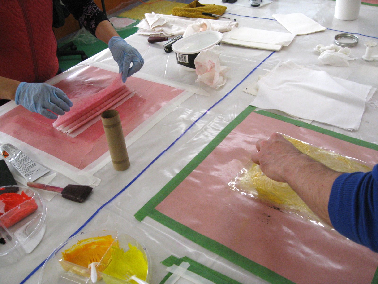 The Mark Making With Thread class at Victoria College of Art had a busy day painting background fabricsHere are their hands at work exploring paint on cloth