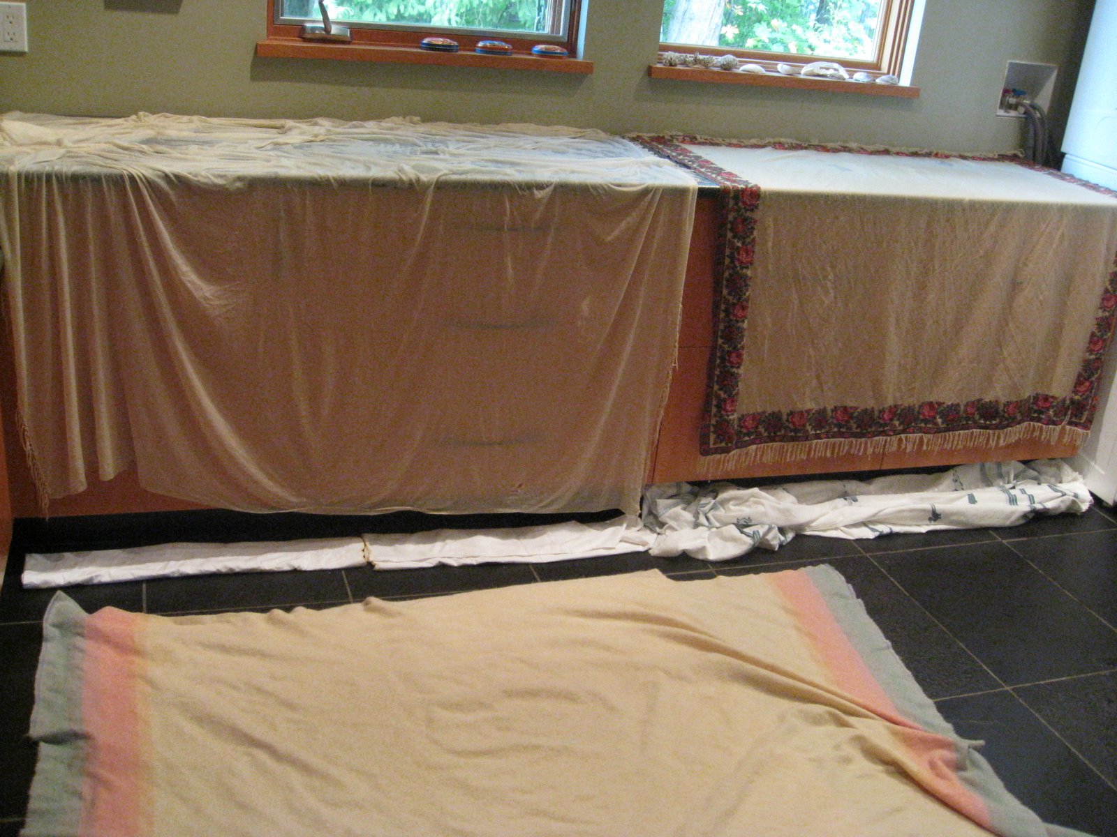 Hand washing some of my thrift store finds and successful bids at auction houses.2 fine wool shawls, one with beautiful, woven, floral border