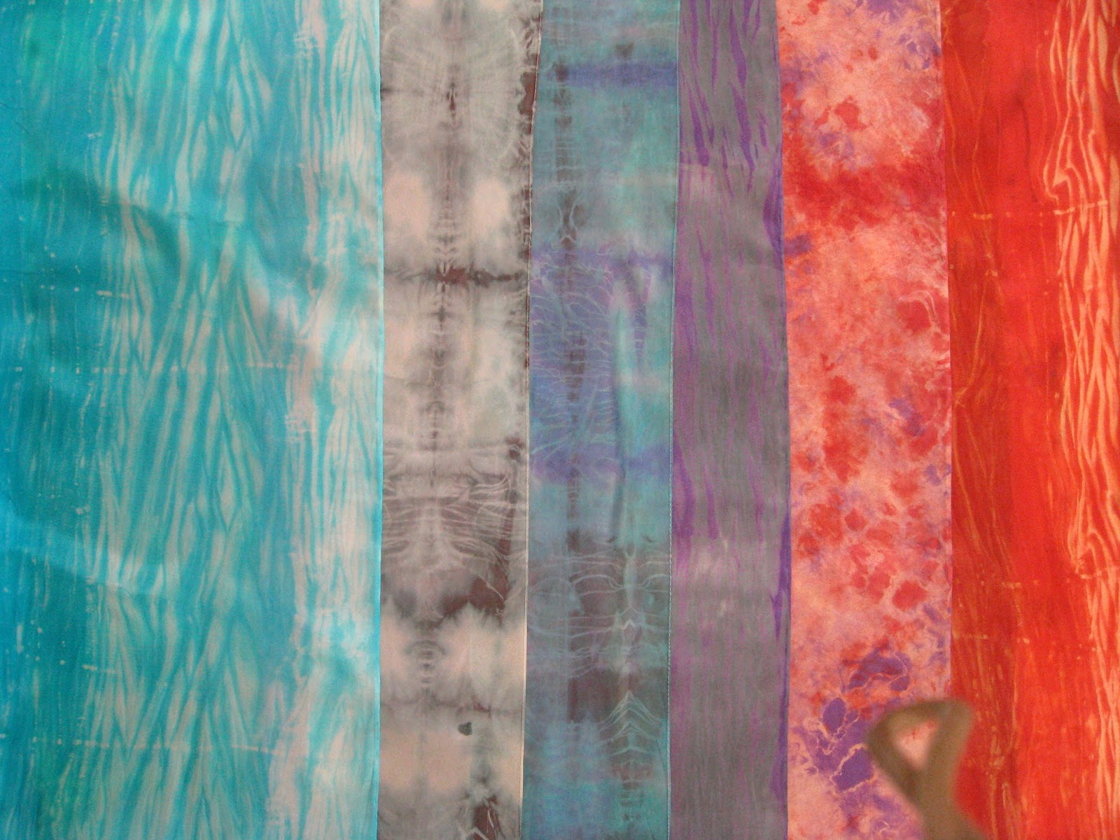 Shibori and random scrunch resist techniques with results that could be achieved within minutes.