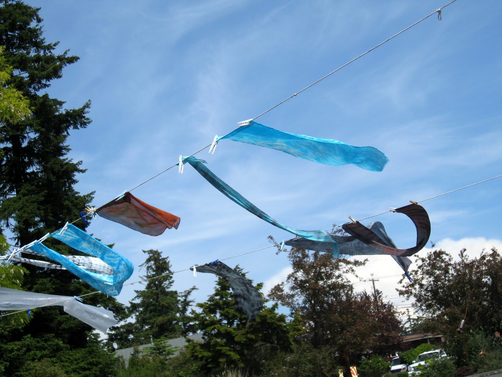 It was such a warm breezy day the conditions were most pleasant for working outside. I dyed all the silk I brought with me.