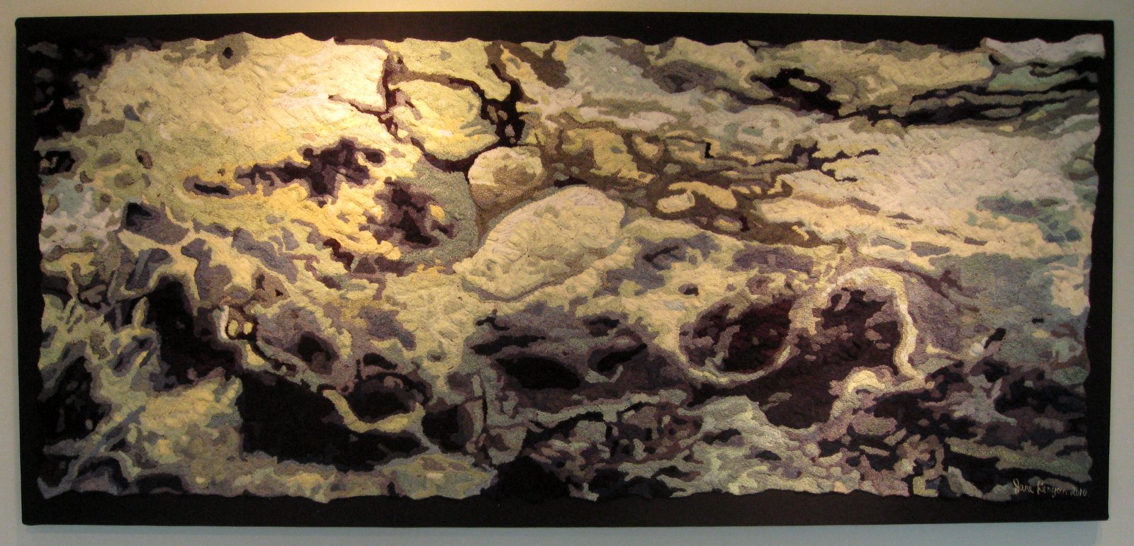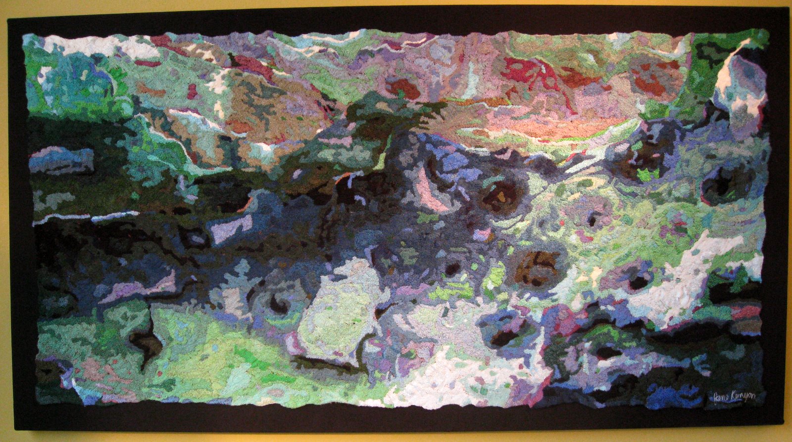 Jane Kenyon is another artist whose work makes the viewer dance as they move back and forward, changing perspectives from macro...