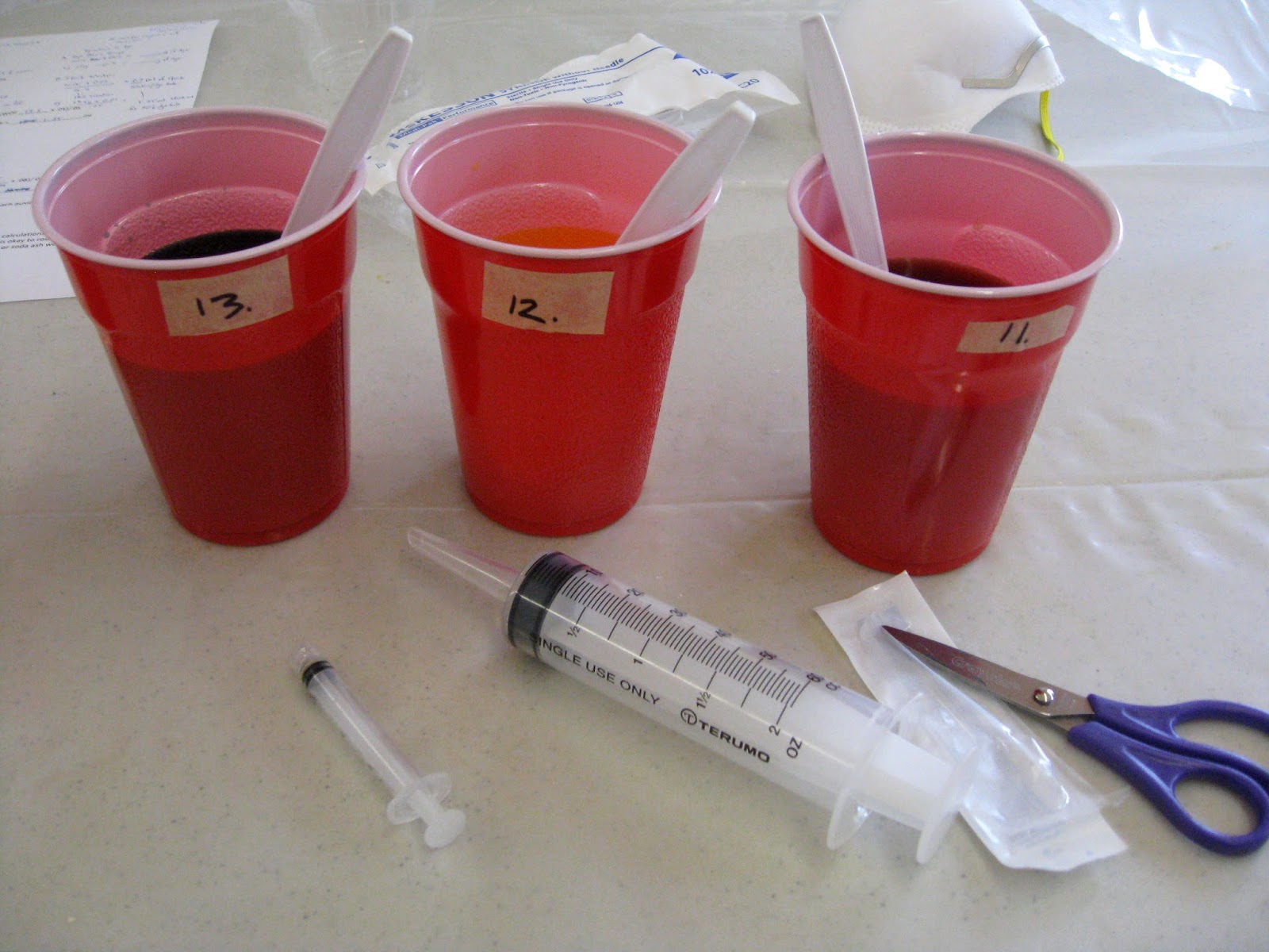 Day one focused on mastering the basic system of weighing the fabric then adding precise amounts of dye from stock solutions.
