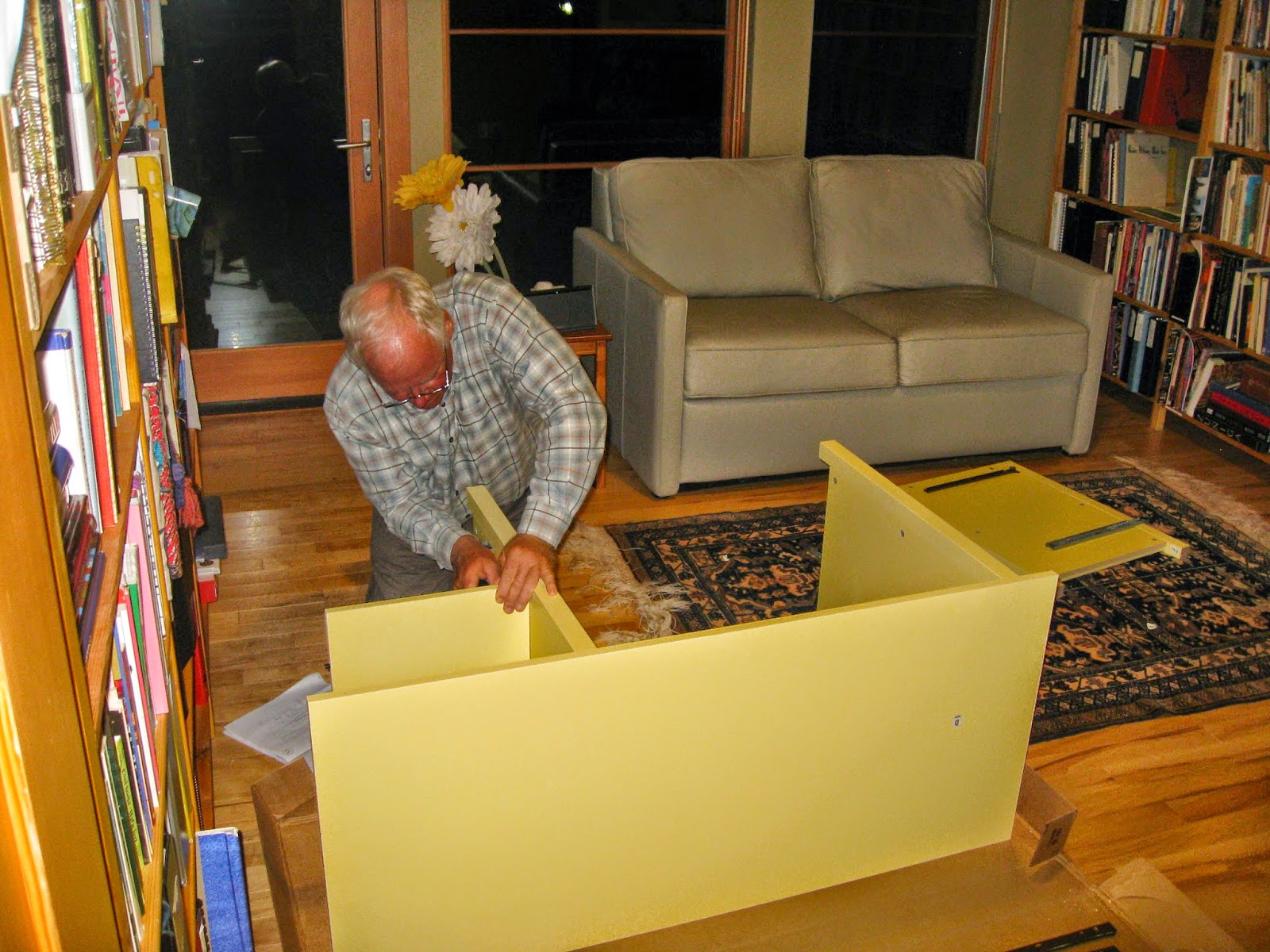 Here is one of two walls of the library. The couch can now be easily pulled out to make a double bed. I'm sure our next lots of guests will enjoy sleeping with this arrangement rather than squeezing around sweaty work-out equipment.