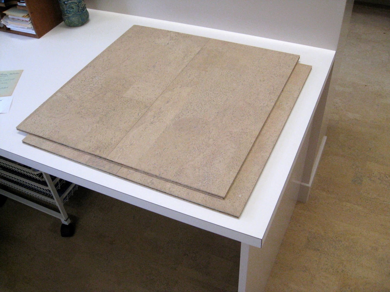 The left-over cork floor tiles on the left I thought would make a useful cutting surface when using the Exacto knife but the cutting rulers bumped up against the tiles so they had to go.