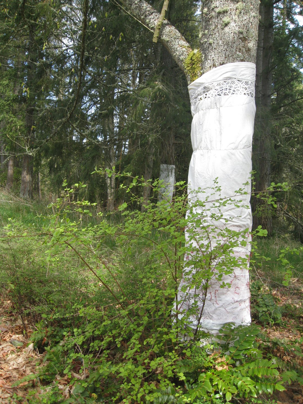 The Maple tree cloth's Battenberg lace deteriorated and was not able to support it so it came inside for repairs.