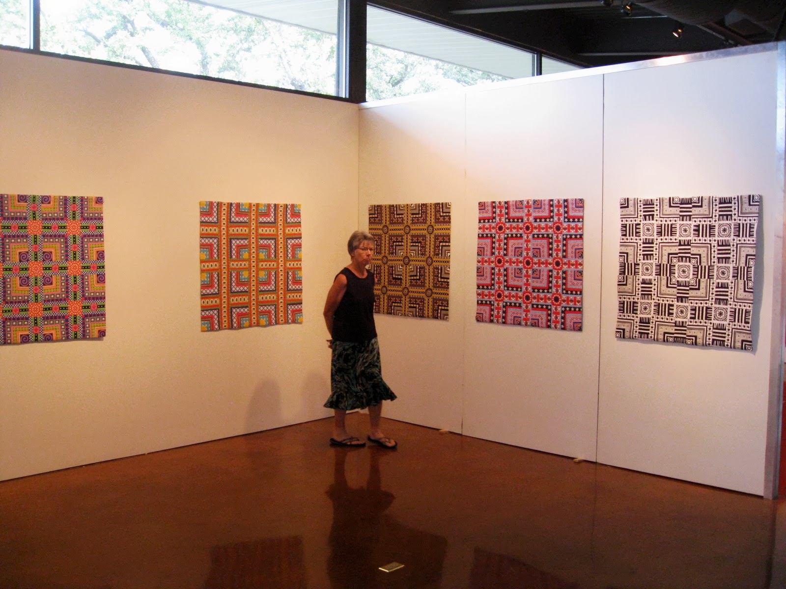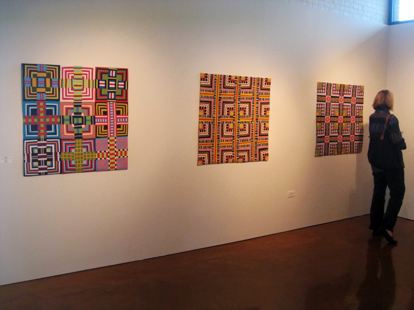 The quilts were installed in a 3-sided booth, which made viewers move in a complex dance back and forward between the walls as they looked, compared, and looked again as discoveries were made.