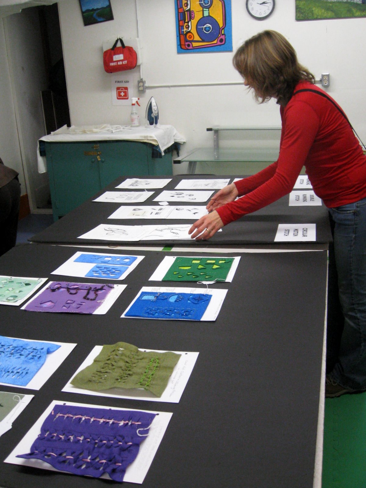 The first Fine Arts Textiles course is nearly finished. We started with 2 basic hand stitches then spent 2 full days a week for 5 weeks exploring the qualities of many variables possible with these 2 stitches. And we barely scratched the surface.