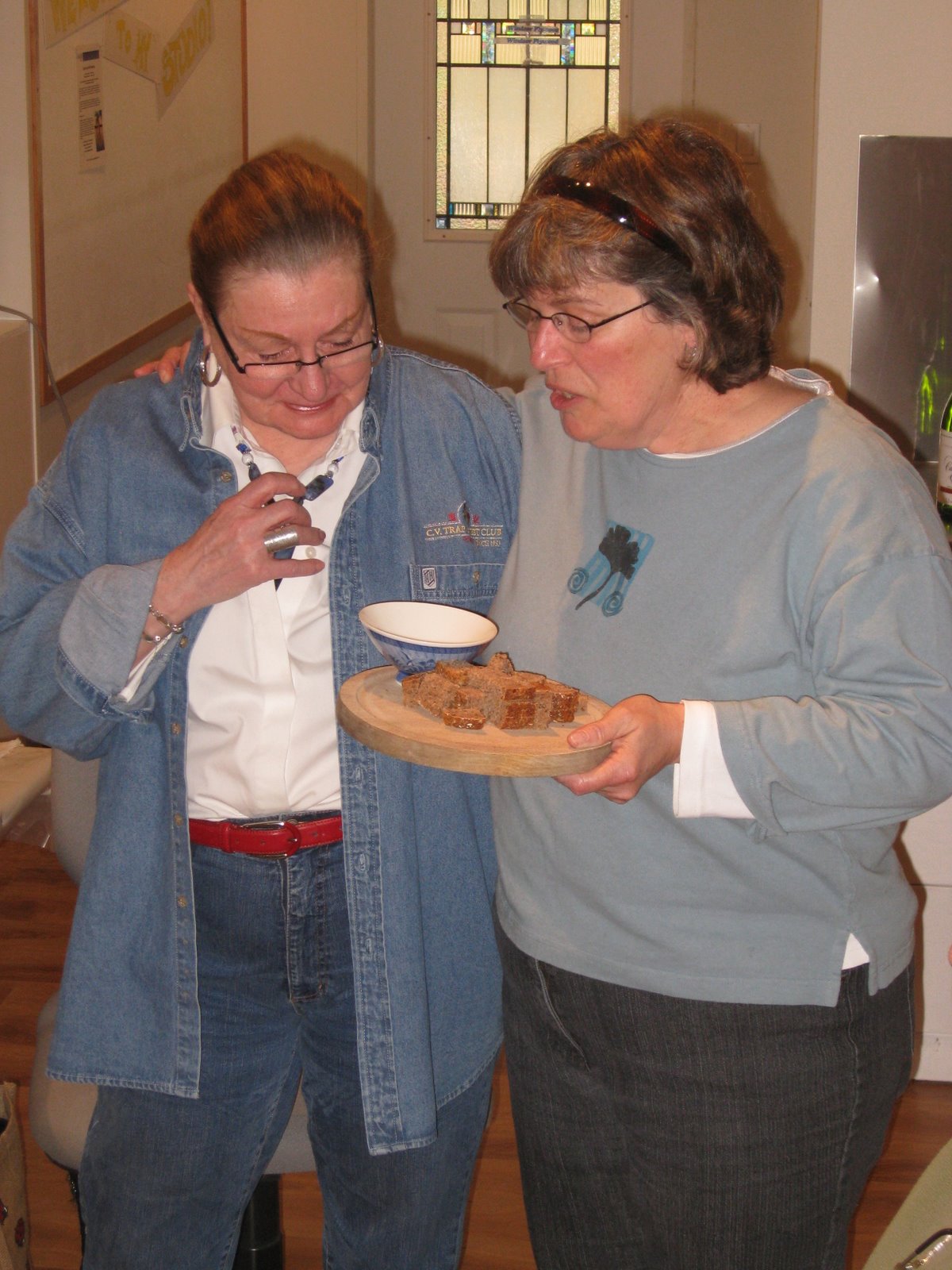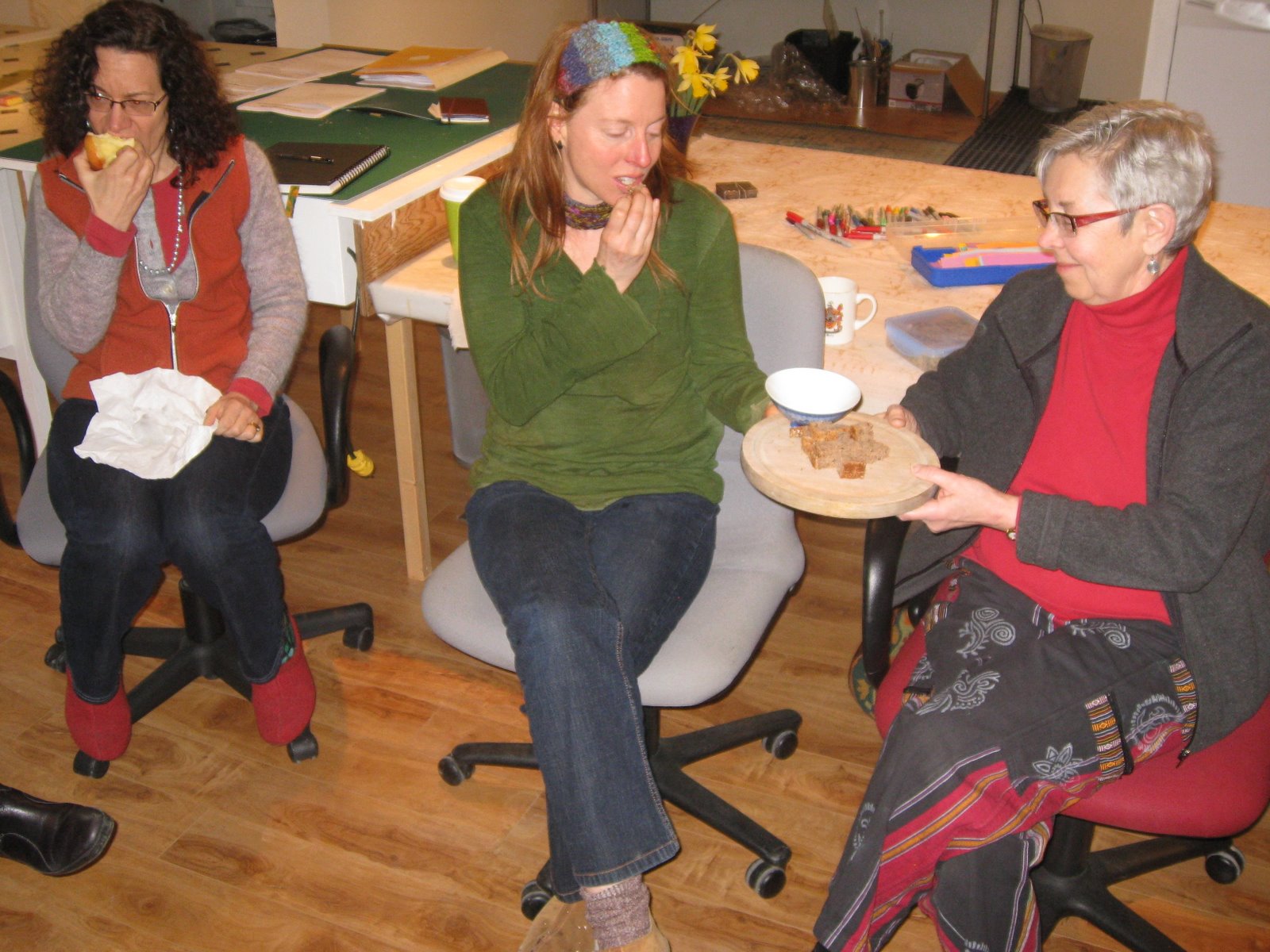 Then the plate was handed around the group while sitting in a circle - Kristin Rohr, Gayle McIvor, Martha Cole.