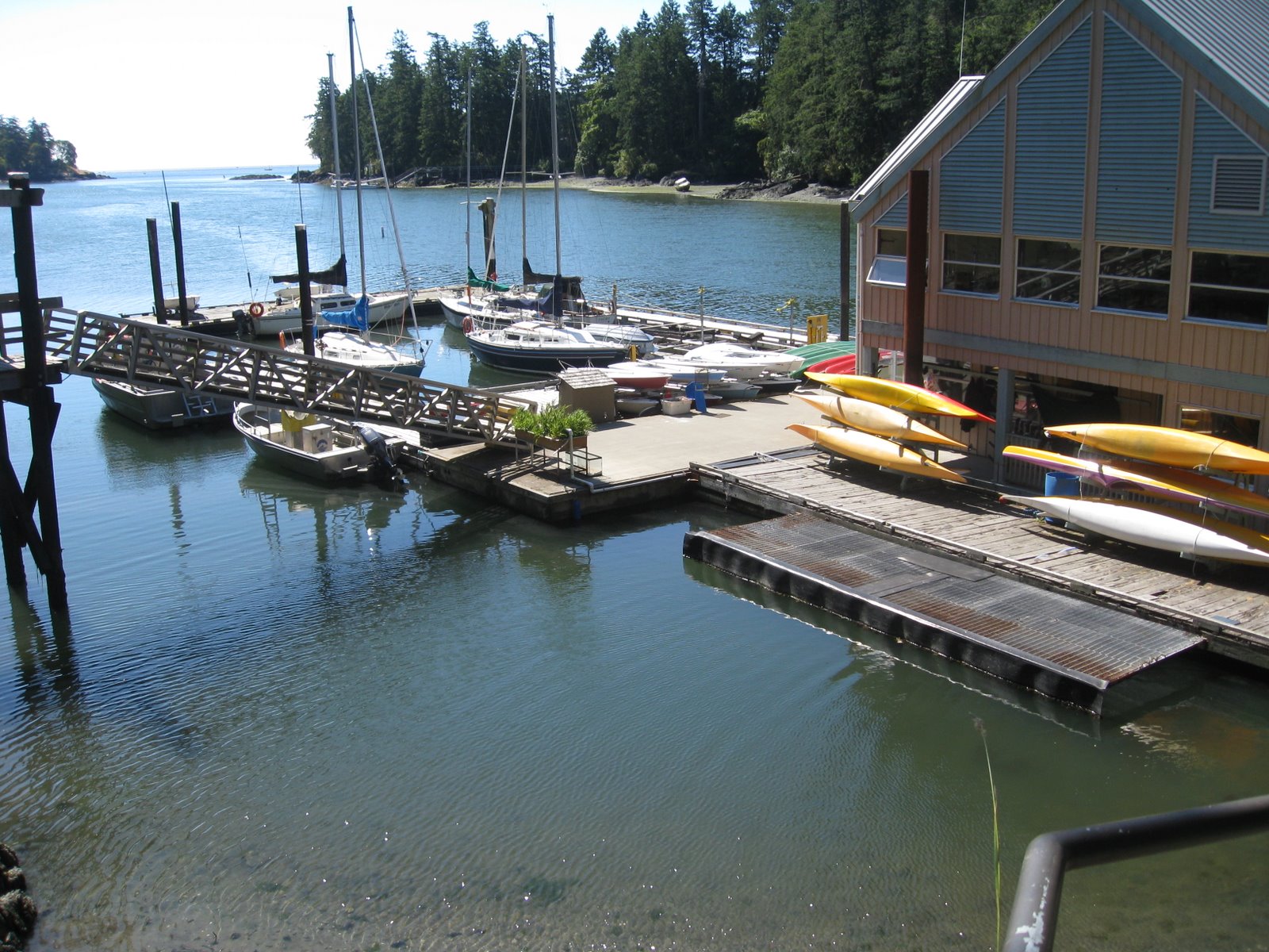 This is a the view looking down on the floating classroom, a marine biology lab during the school year.