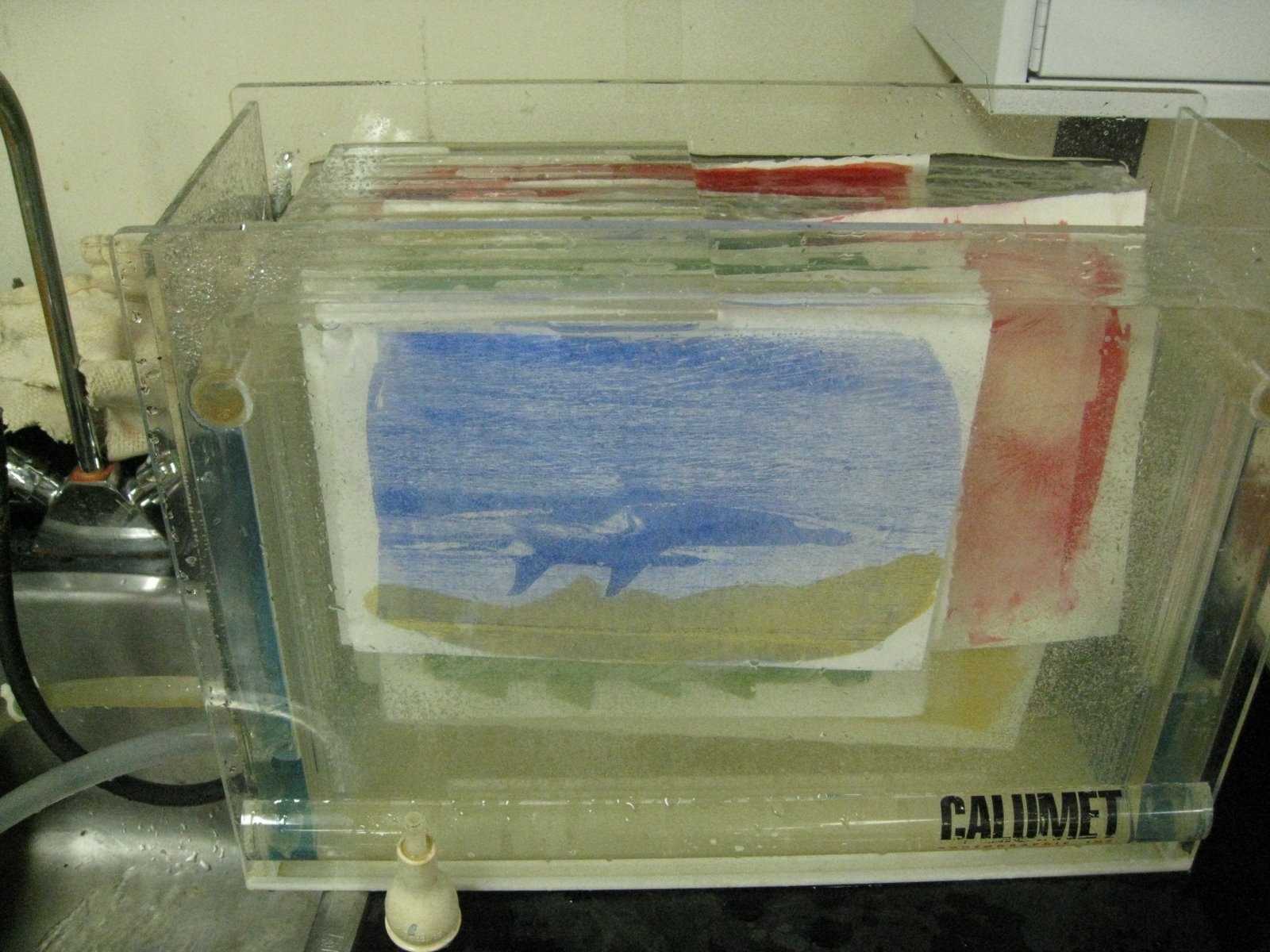 The above image is from day 3 when we were shown how to do gum bichromate printing. This is the wash tank.