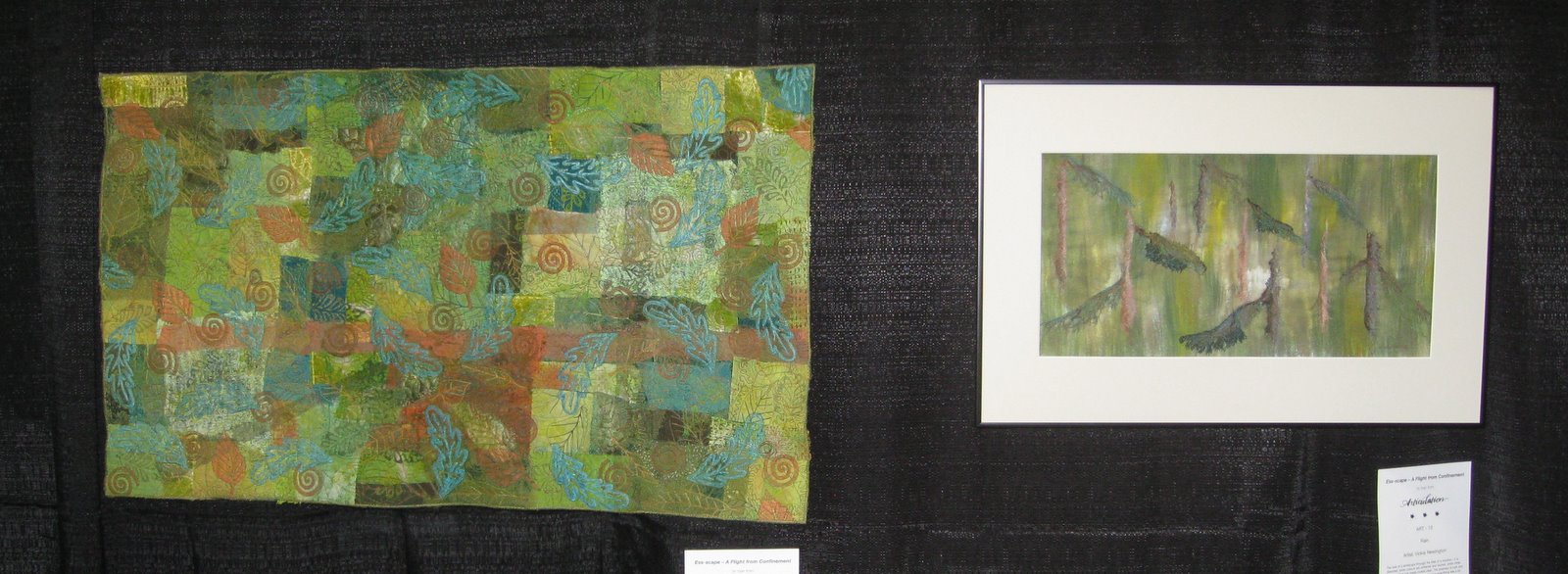 The work on the right is Leann's, another life-long prairie girl, and like Donna, she too responded to the mass of many greens and leaves falling from overhead.