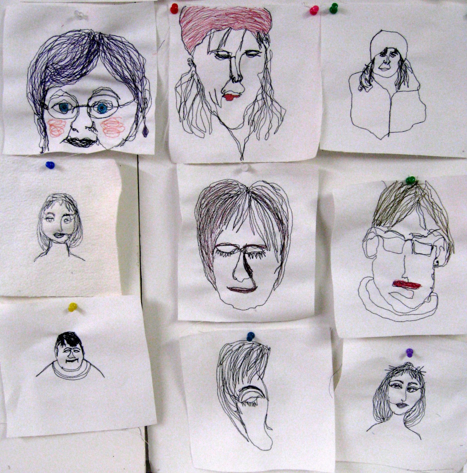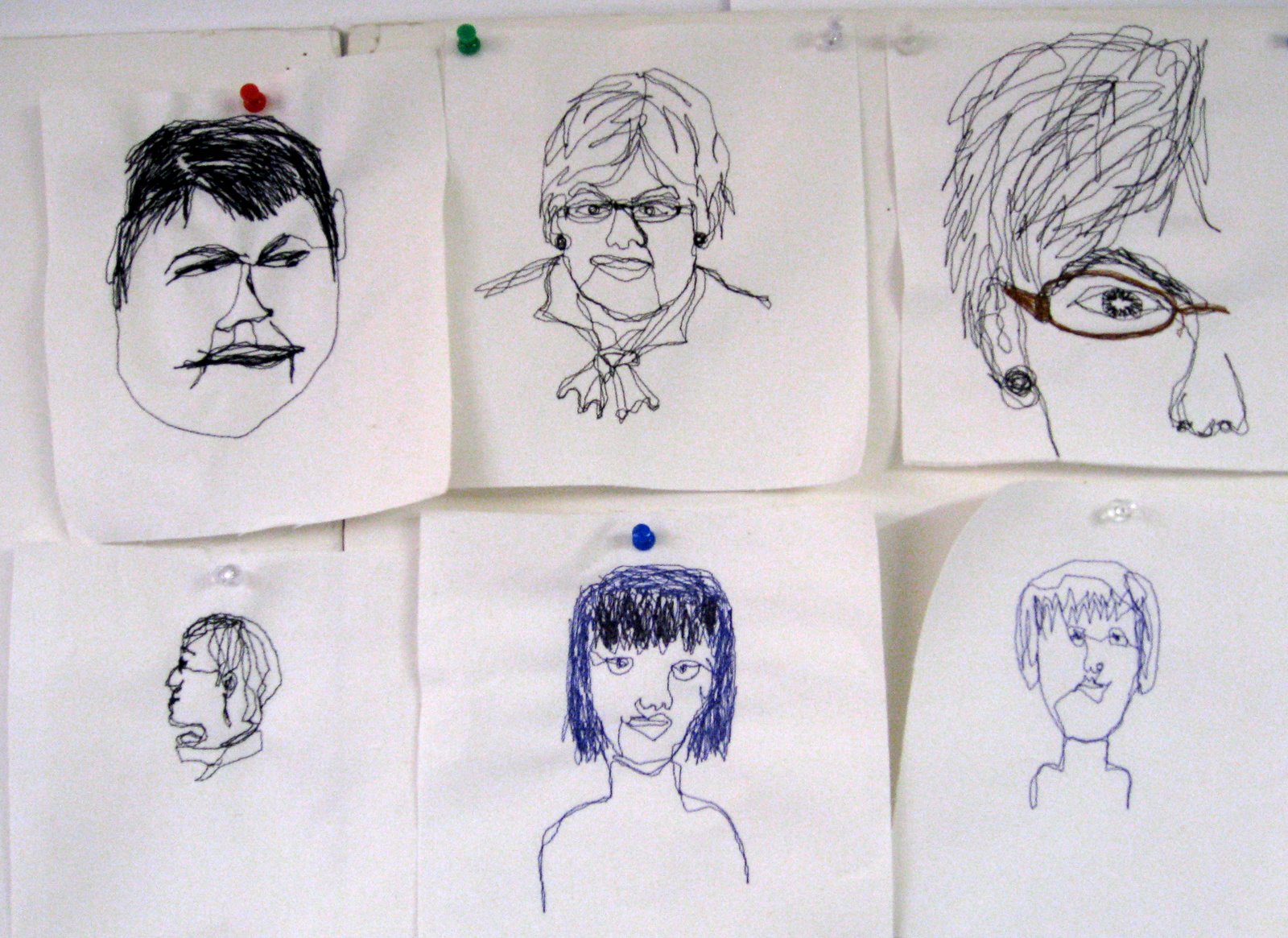 Here are some more of the portraits and flower drawings my Mark Making With Machine students did last week.