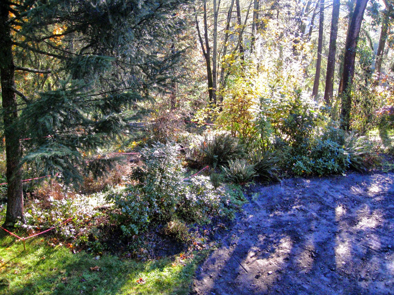 I told Tom which plants I wanted to save. He laid down a bed of soil a safe distance away then scooped up each plant and placed in its new temporary home. I don't think the plants even noticed what had happened to them.