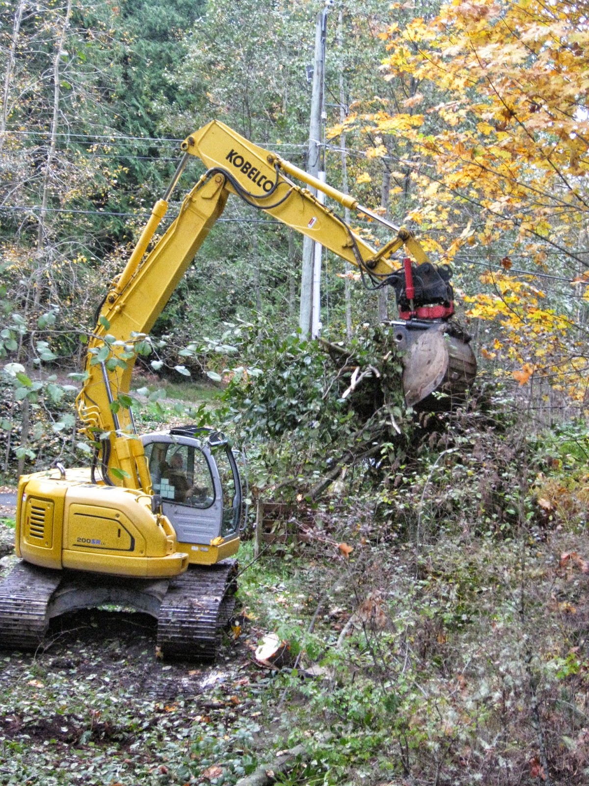 Then Tom Mann, of Pioneer Excavating Services, appeared on the scene with his monster machine. Tom looked like a transformer sitting inside his machine, controlling it with such care and skill.