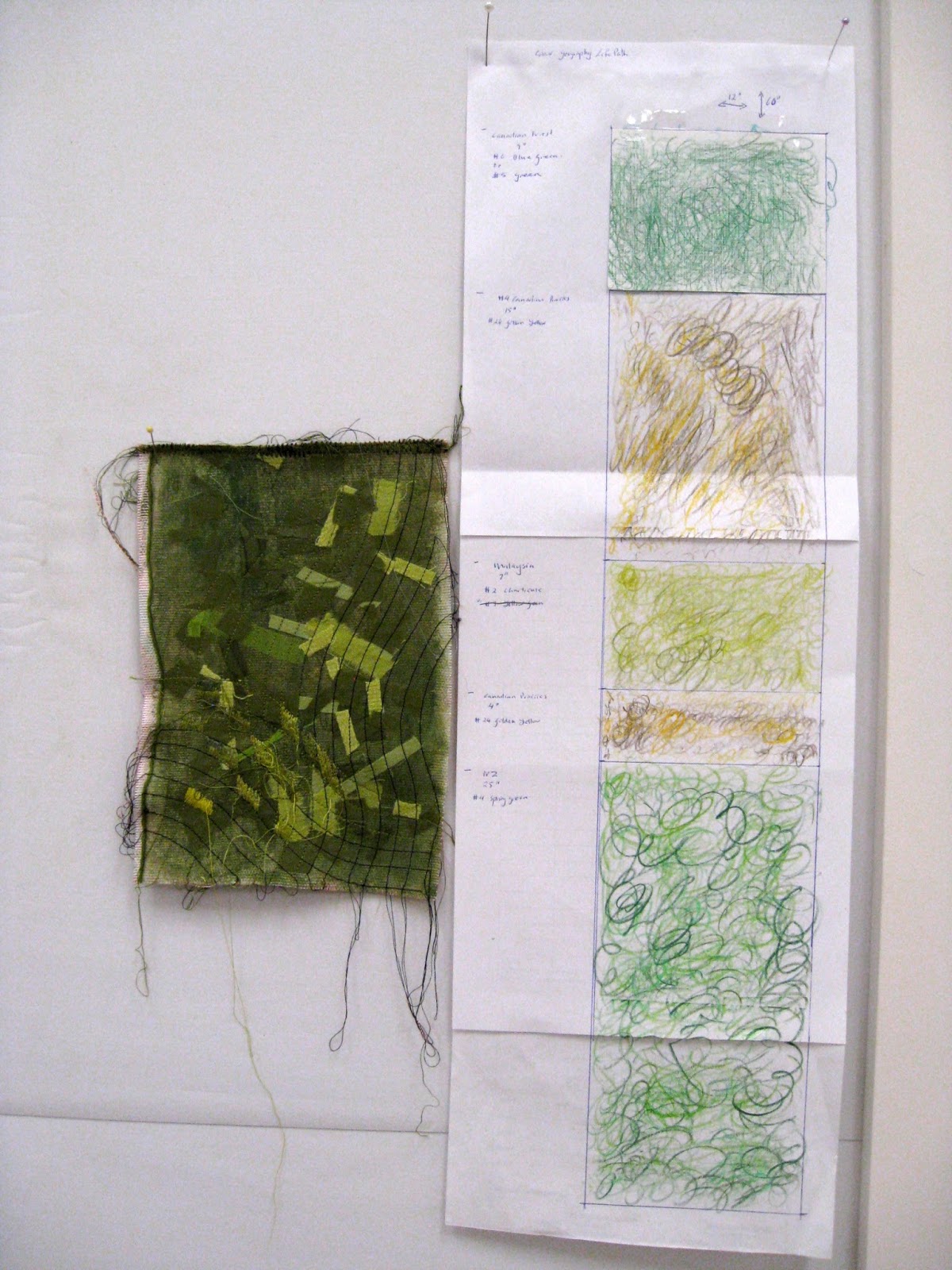 I began by making a life-size sketch then started sampling. My visualisation of this work was so clear my first sample was enough at this stage of my design process to be able to move on to the next step.