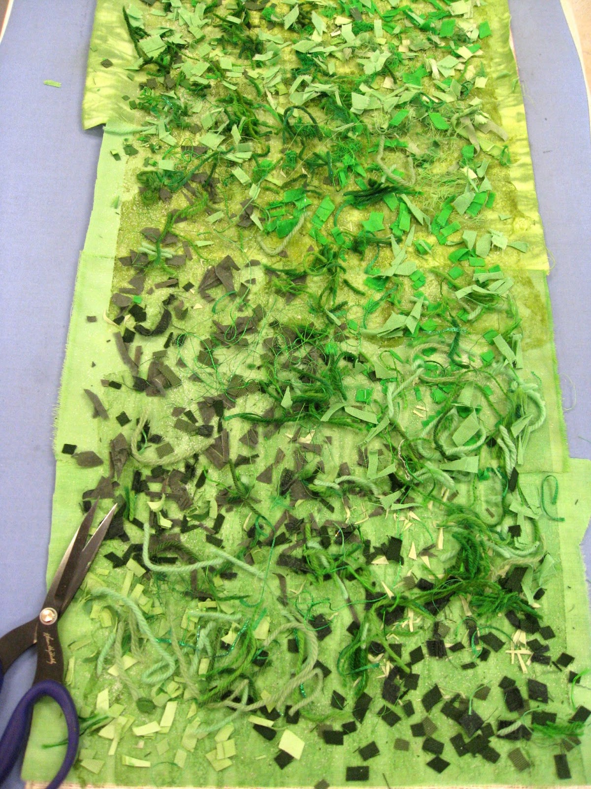 Adding snippets of threads, yarns and fabrics to build up the complexity and texture of each section.