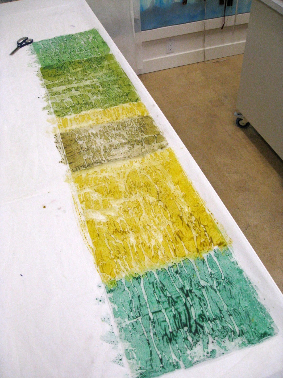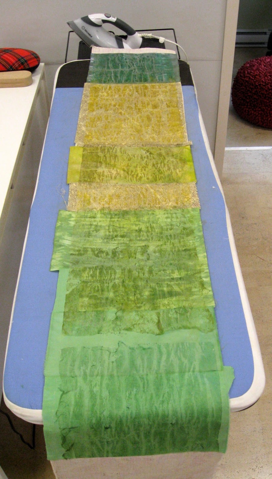 This new work began when the Vancouver Island Surface Design Association put out a call for entry. They were looking for an interpretation of 'Pathways' in a 60" x 12" format.