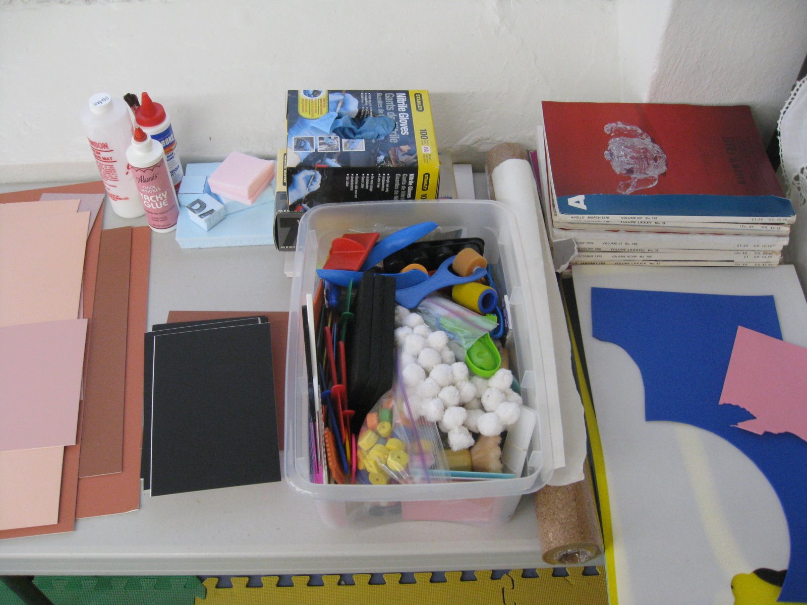 This was the Supplies station. Different people donated materials to the class so the students had a lot to choose from when they were planning their stamps.