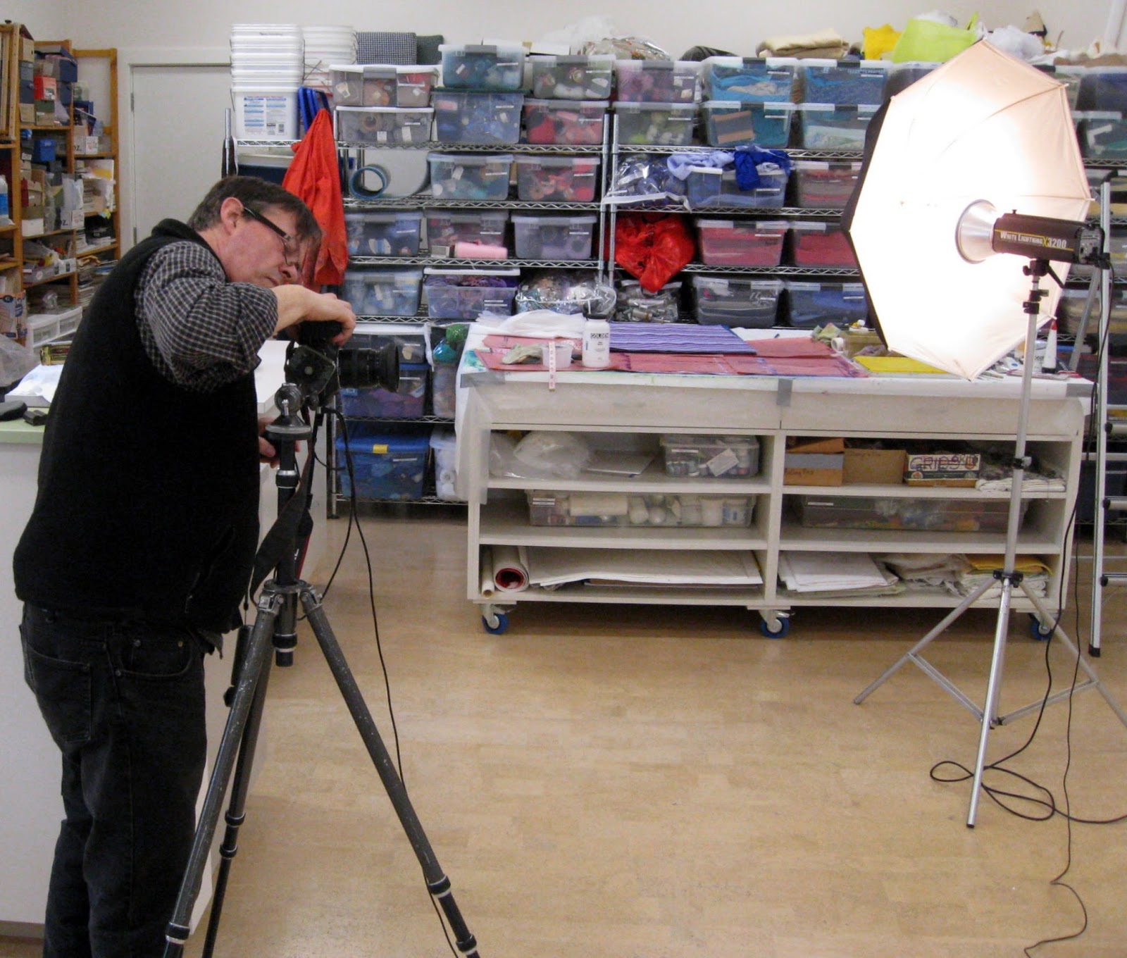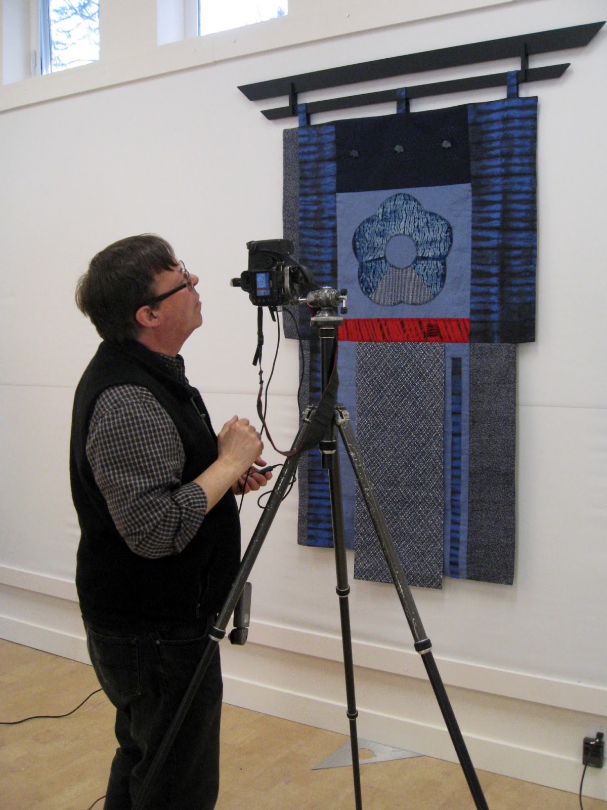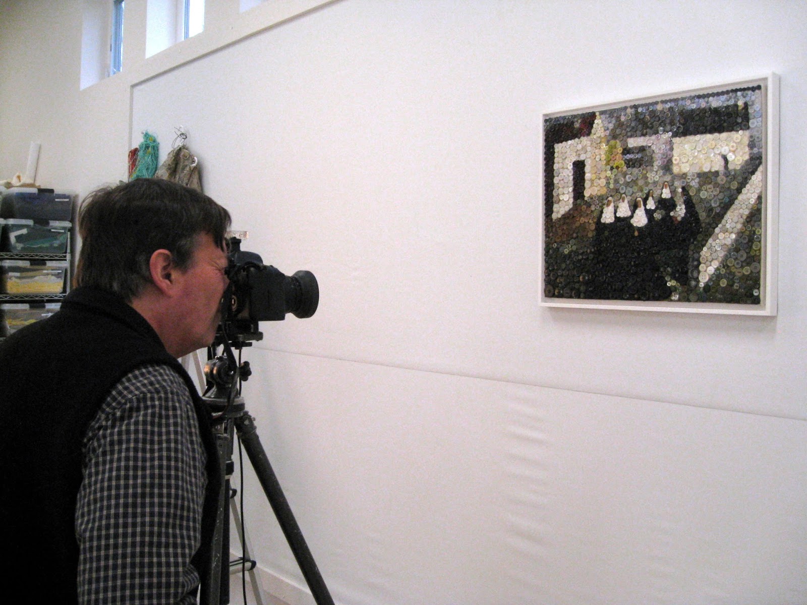 Here he is setting up to photograph Barbara McCaffrey's large work.