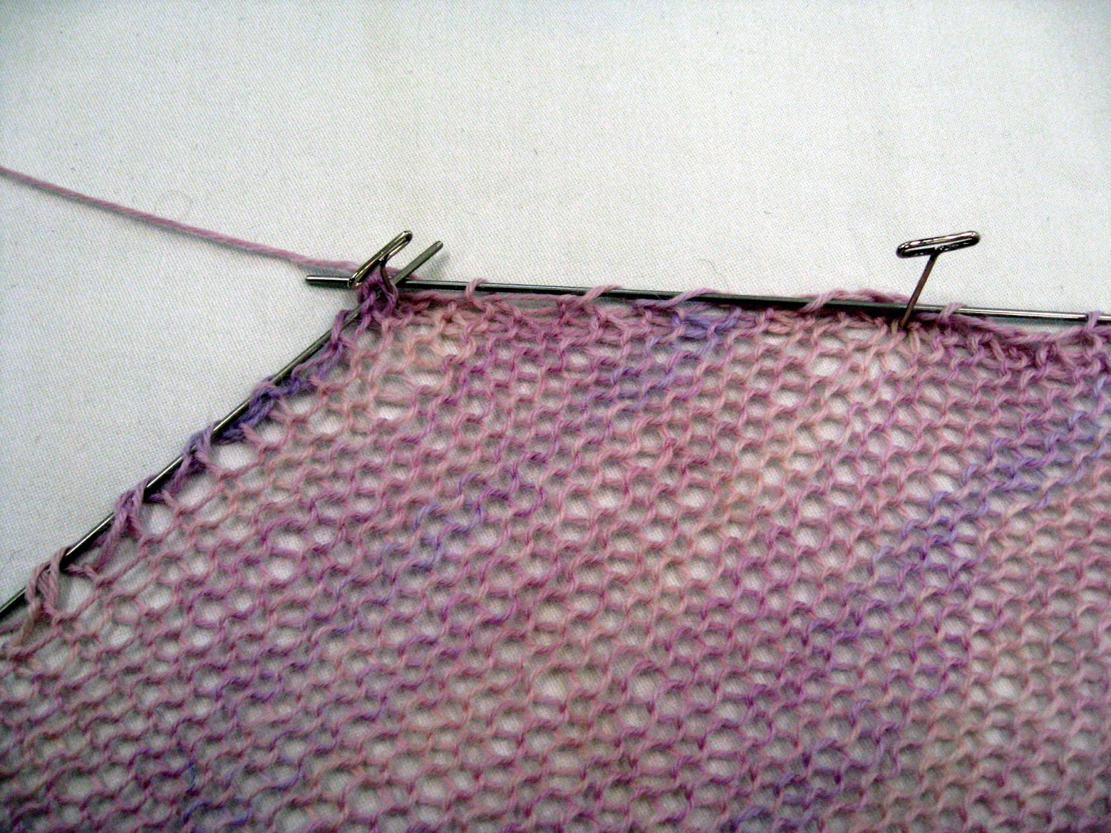 To block knitting I use wires to hold the edges out straight while the fabric is drying. Wool has memory and will hold this shape once it is dry.